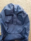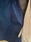 Columbia packable windbreaker Size Large Blue/Khaki/Green 30" Long Zippered pockets Elastic adjustable waist and hood Very good pre-owned condition