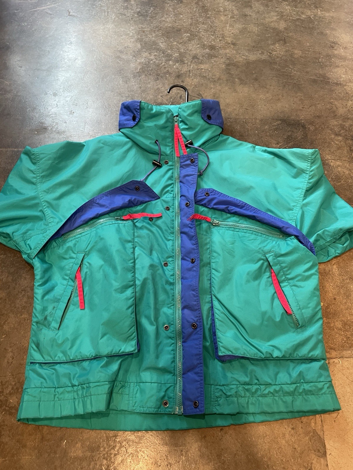 Vintage Columbia ski jacket in good condition. Size is large. Has fleece lining in the front pockets. I’m 5’9 170lbs and it’s a cozy fit, could even wear a lighter undercoat for really cold days and the jacket not be tight