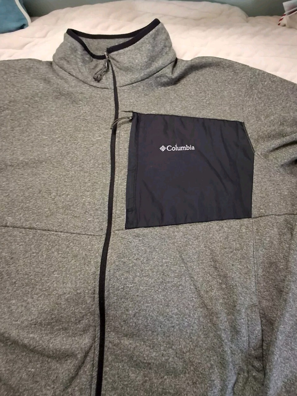 Pockets Blue Unlined Mens Coat Sweat Shirt Columbia Jacket Mens Size XXL Full Zip 3 Zip up pockets Review measurements for fit prior to purchase Measurements were taken with garmet laying flat and are approximate: Armpit seam to armpit seam 30" Top shoulder seam to top shoulder seam 22" Back center neck seam to base 30.25" Armpit seam to base 20" I consider this to be in good preowned condition Please view all photos zooming in on them as they are part of the description for you to judge condition. Has Been Cleaned/Washed Per Label Instructions Possible area of minor piling but nothing that stood out to me