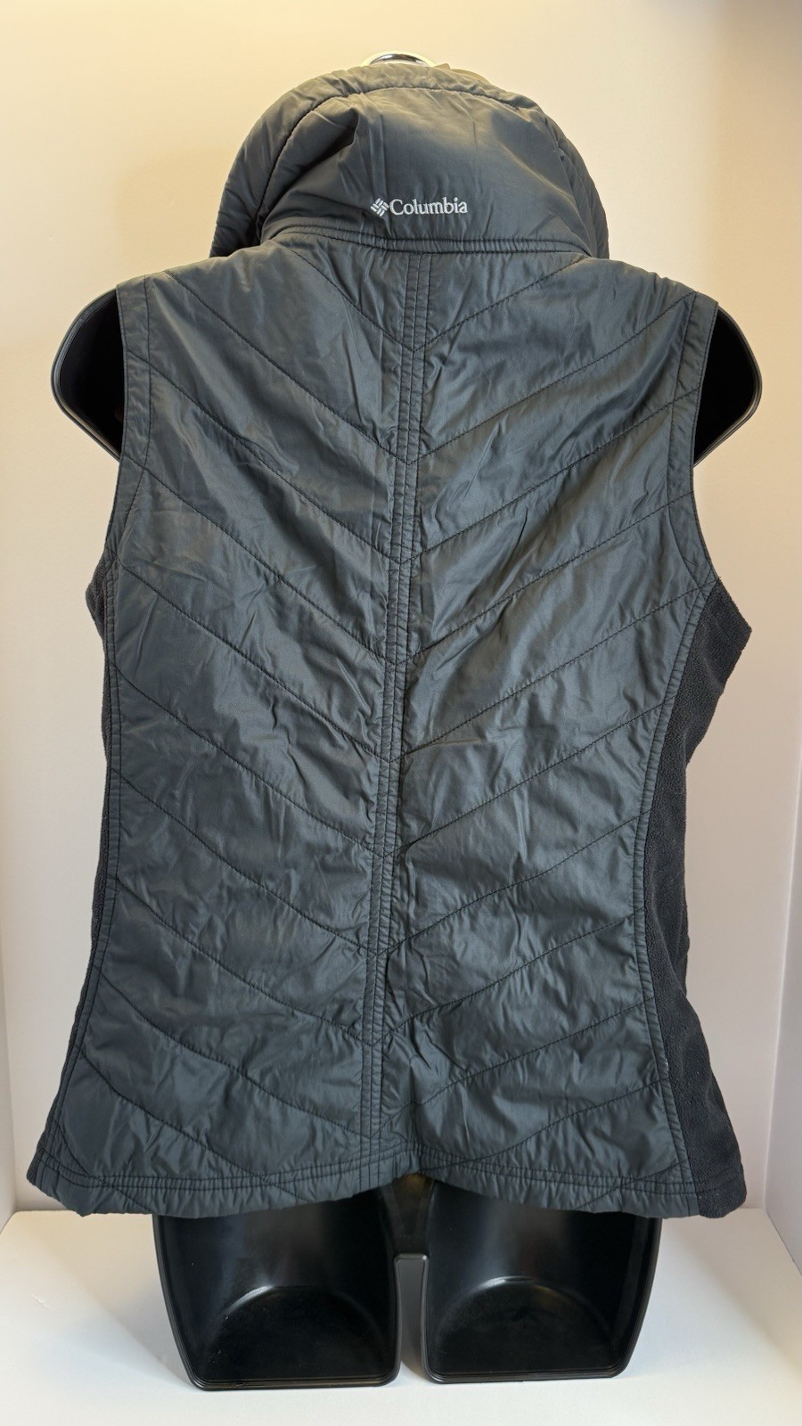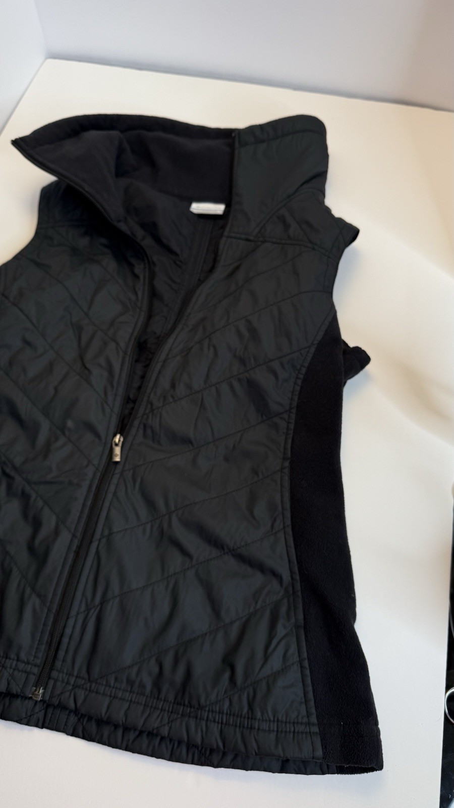 Columbia Women’s Black Quilted Fleece Vest Size M Stay warm and stylish with this Columbia Sportswear vest. Features: • Size: Medium (M) • Color: Black • Quilted front with lightweight insulation • Soft fleece sides and lining for comfort • Full zip closure, high collar for extra warmth • Great for layering in cooler weather 🔹 Condition: Pre-owned, good condition (see photos).