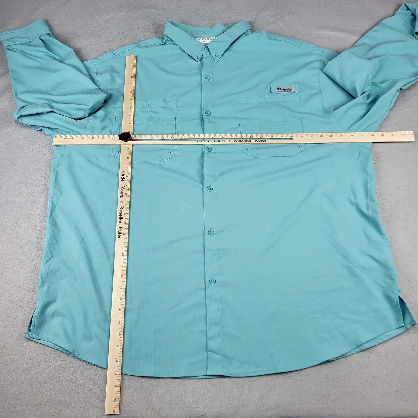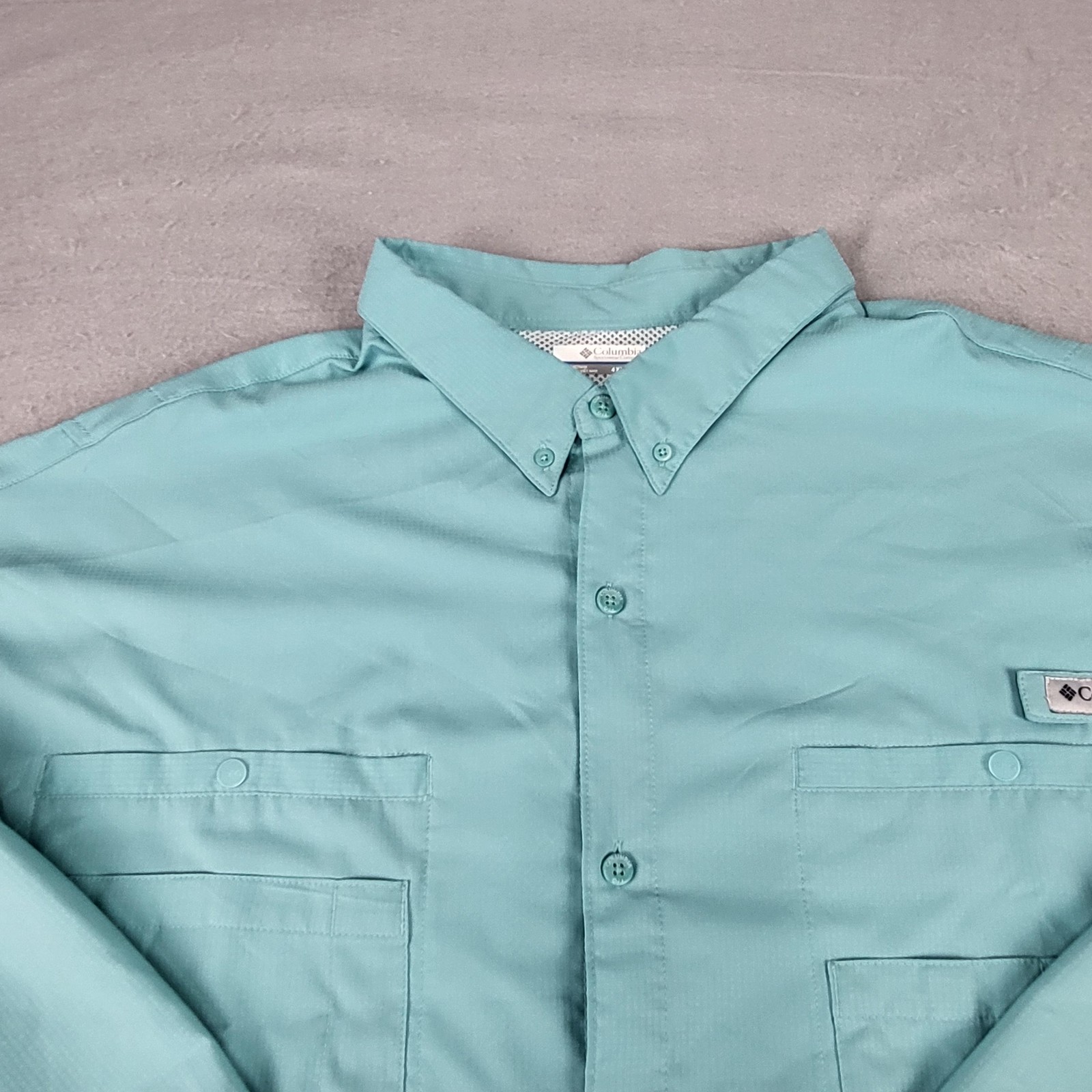 Brand: Columbia Sportswear Company PFG (Performance Fishing Gear) Item: Long sleeve fishing shirt with button-down collar Tag size: Mens 4XL Tall (4XT/4TL) Color: Teal green Features: Omni-Shade sun protection; lightweight ripstop fabric; mesh-lined vented back Features: Dual chest pockets with snap closures; utility D-ring; button cuffs Logos/markings: Columbia PFG chest patch; PFG triangle back patch; OMNI-SHADE sleeve detail Made in Vietnam Notes: See photos for design details and overall fit. Disclaimer: Different sources of lighting can change your perspective on the color of the clothing Disclaimer: All clothing is measured in a resting position lying flat. All items have been cleaned per eBay standards & policies. We ship items daily via USPS Ground Advantage or Priority Mail with a tracking number for confirmation, so expect a quick delivery. We also offer free 30-day returns!! Please feel free to reach out anytime with any questions you may have. Thank you for shopping at Curiosity Corner RVA!!! Follow my store for greater discounts seller:kevredfor_0