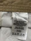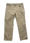 Columbia Pants in size 38x30, beige color, made of durable cotton twill fabric. These hiking and camping pants feature a flat front, straight leg style, and a mid-rise fit. Designed by Columbia with Omni-Shade technology for protection from the sun. Ideal for travel, casual wear, or workwear in all seasons. The pants have slash pockets, a zip and button closure, and are machine washable. Perfect for nature enthusiasts and outdoor activities.