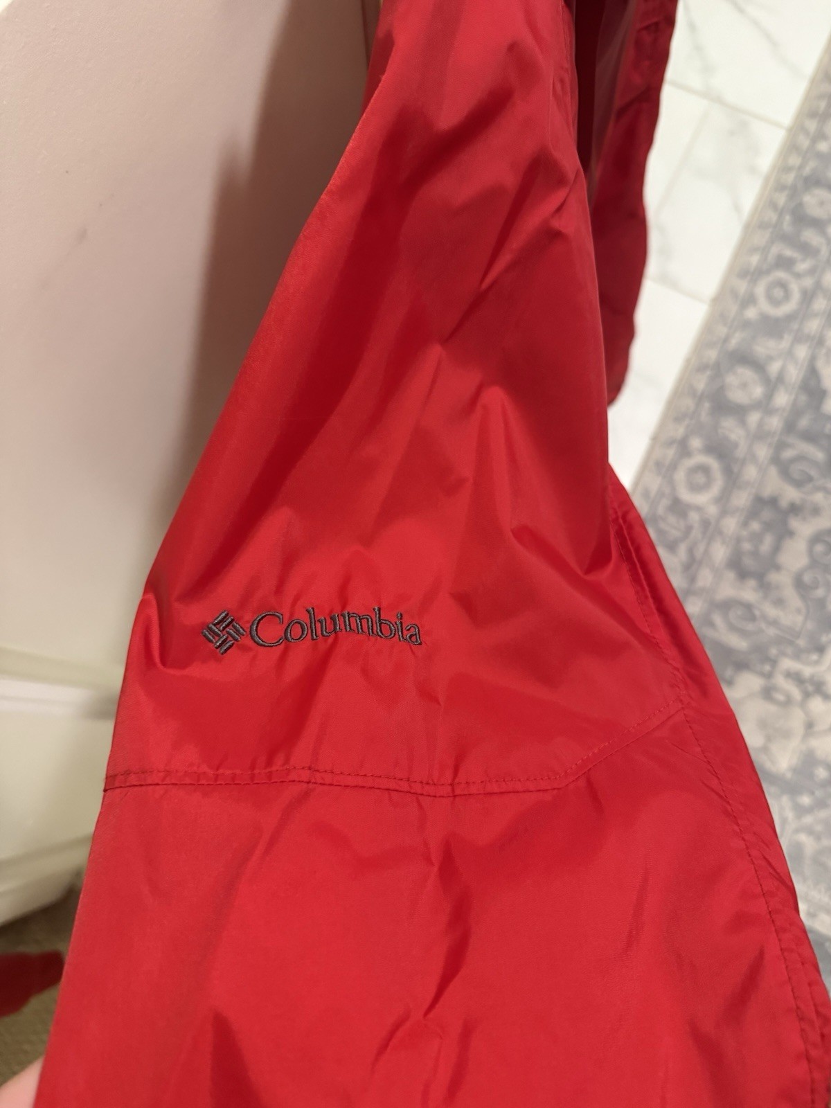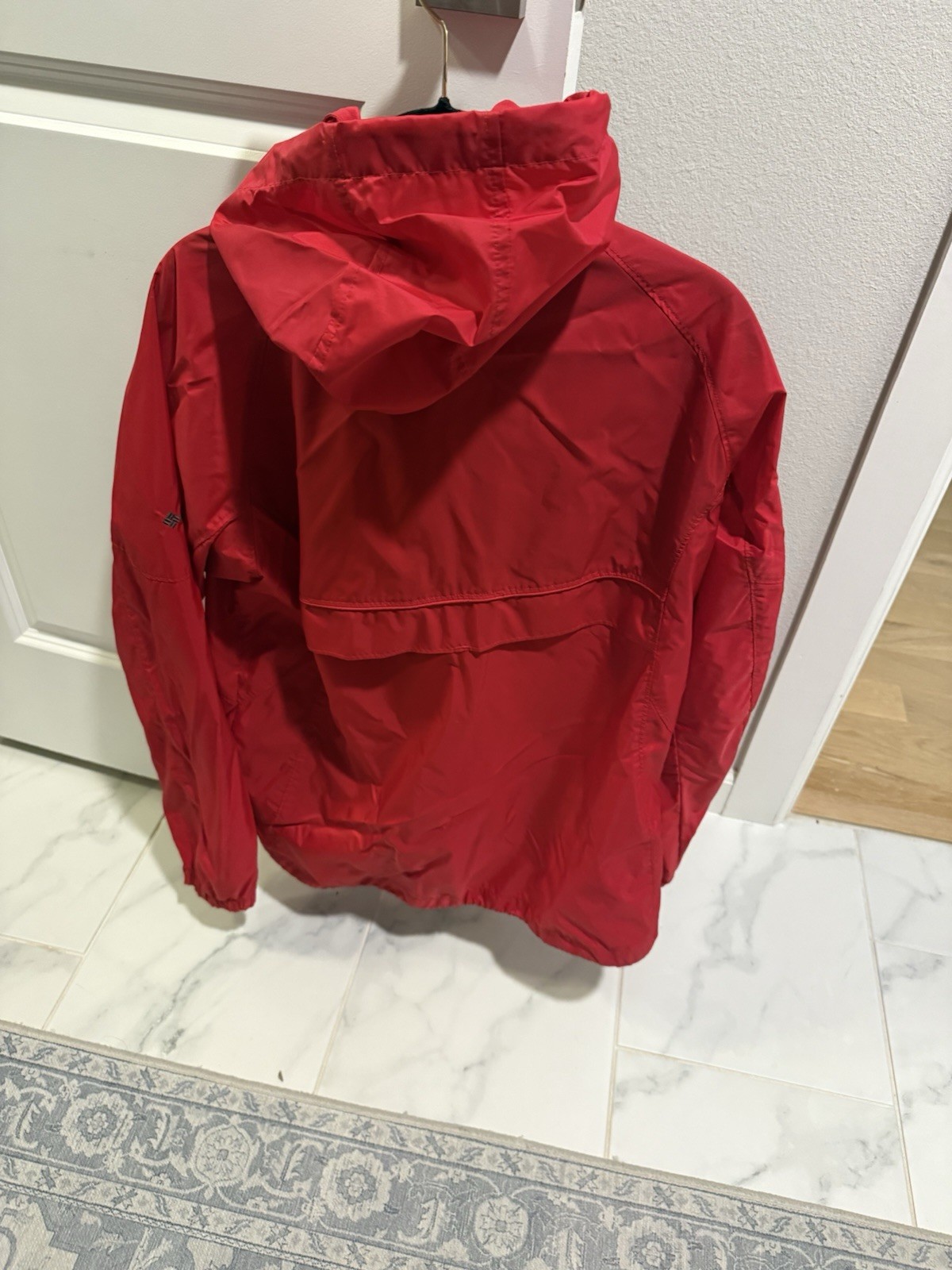 Lightweight red windbreaker. Hooded design. Full zip closure. Ideal for outdoor activities. 100% nylon shell. Mesh lining: 50% polyester, 50% recycled polyester.