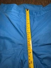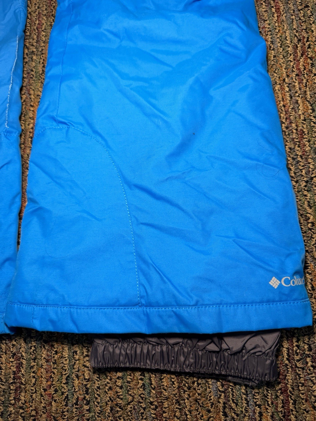 A few stains, mostly on the butt. Needs a good wash. The Columbia Snow Pants in size Small are a unisex choice for winter sports enthusiasts. These blue Bugaboo Omni Tech pants feature a softshell fabric with a waterproof design, making them ideal for skiing, snowboarding, snowshoeing, sledding, and ice skating. The adjustable waist and bootcut leg style provide a comfortable fit for outdoor activities in cold weather conditions. With multiple pockets for storage and easy machine washable care, these snow pants by Columbia combine functionality and style for winter adventures.