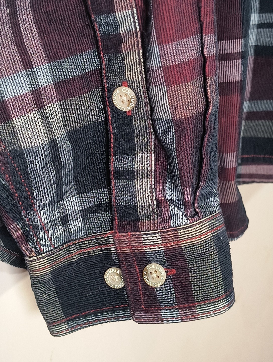 The Columbia Sportswear Men's XXL Regular Fit Plaid Shirt in Burgundy Blue is a classic and colorful button-up shirt made of cotton flannel. It features a collared neckline with a button-down style, long sleeves, and a regular fit. This versatile shirt is suitable for travel, casual wear, and work, making it a practical and stylish addition to any wardrobe. With its easy-care fabric and all-season appeal, it is a must-have for the winter, fall, and spring seasons.