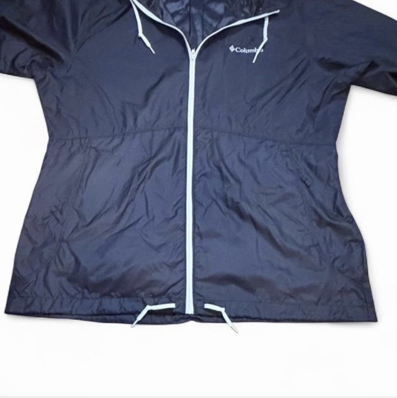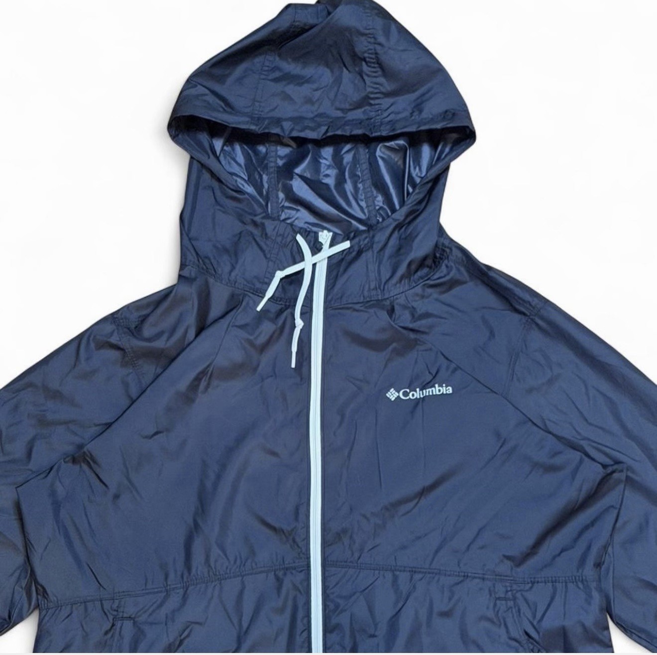 The Columbia Women's Lightweight Windbreaker Jacket in blue is a stylish and practical option for women in size L. Made of durable polyester with a breathable nylon fabric, this mid-length jacket features a hood, full zip closure, and zippered pockets for added convenience. Perfect for travel or casual outings in the summer, fall, or spring, this wind-resistant jacket from Columbia Sportswear is a versatile and reliable choice for staying comfortable in changing weather conditions.