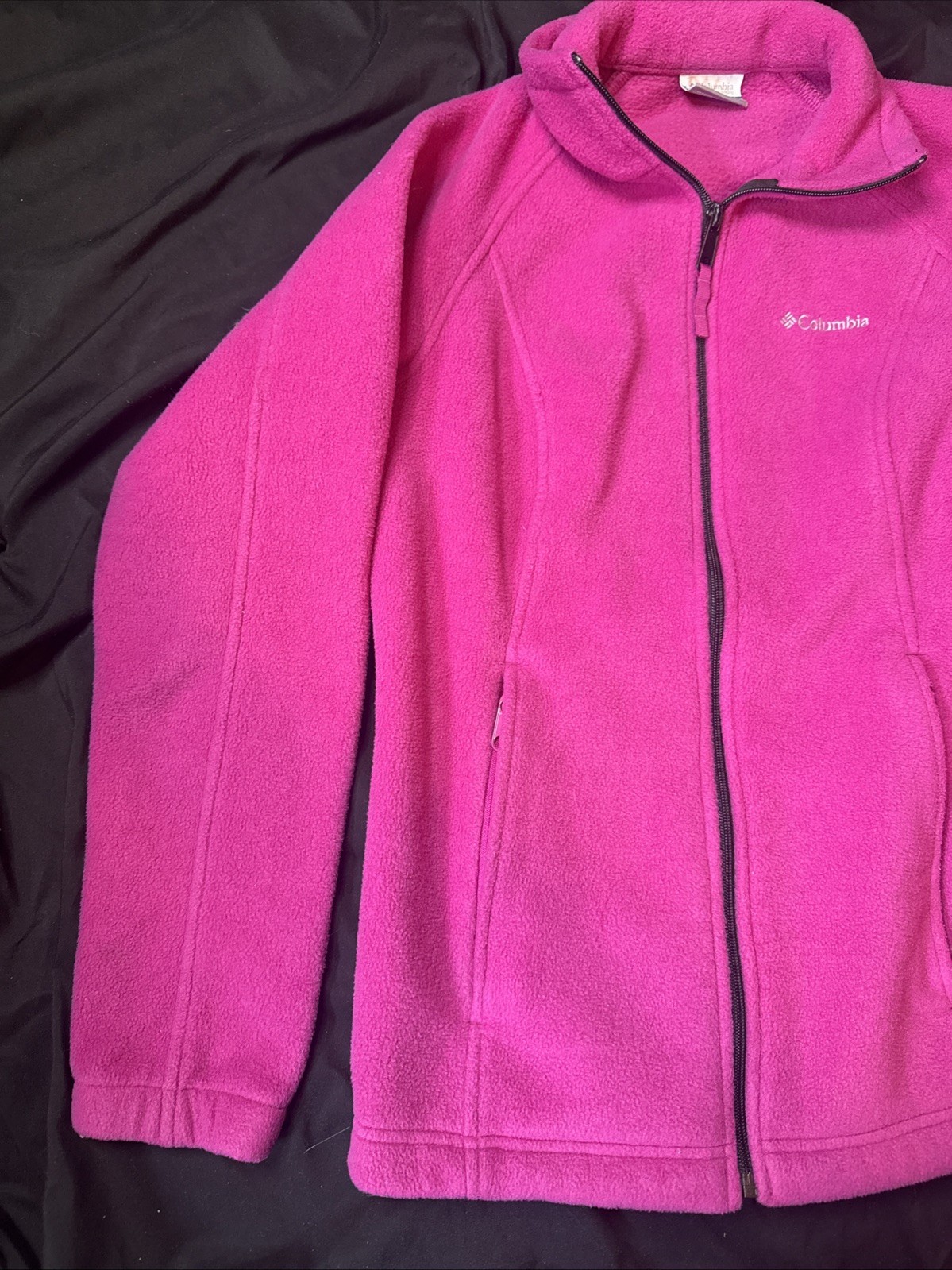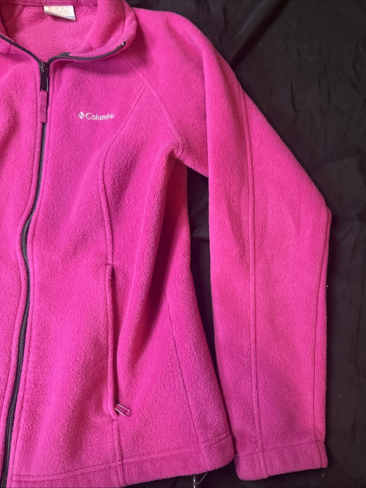 The Columbia Women's Pink Fleece Casual Jacket in size Small is a stylish and practical outerwear option for women. Made with a polyester outer shell and fleece lining, this mid-length jacket is perfect for casual occasions. The full zip closure and pockets make it convenient for outdoor activities in the winter, spring, or fall seasons. With a regular fit and basic jacket style, this Columbia jacket combines comfort and style effortlessly, ideal for everyday wear.