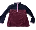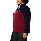 Columbia women's Benton Springs Half Snap Fleece size: 1X color: Marionberry Mock-neck; Snap closures at neckline Color blocked yoke Contrast trim at neckline and cuffs Polyester exterior Nylon trim Machine washable retail $65 underarm to underarm 25" collar seam to bottom 29" R997