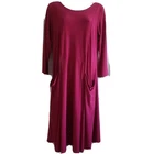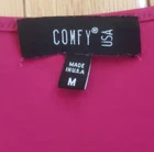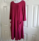 Comfy USA Dress in Raspberry Pink Good pre-owned condition, no flaws Jersey material 95% polyester, 5% spandex Falls just below knee Pockets at hips Marked a size M Approximate measurements 19 inches from armpit to armpit 40 inches in length from top of shoulder to bottom of hem