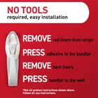 Command Cord Bundlers, Damage Free Hanging Organizer, No Tools Gray Product Details Color: Gray Brand: Command Material: Plastic Finish Type: Painted Mounting Type: Wall Mount HOLDS UP TO 2 POUNDS: One package of the Command Gray Cord Bundlers includes six cord bundlers and 12 Command Strips; one adhesive cord bundler can hold up to two pounds DAMAGE FREE HANGING: Wall cord hider works without leaving holes, marks or sticky residue on a variety of surfaces and remove cleanly when you want to reorganize your electrical cables and lightning cables during the holidays without tools WORKS ON A VARIETY OF SMOOTH SURFACES: Each Command Cord Bundler works on a variety of smooth surfaces, including painted walls, finished wood, painted concrete cinder blocks, laminate and tiles so you can create a festive winter wonderland in your space SURFACE PREP: Clean with rubbing alcohol to remove grime and dust to allow the cord organizers to bond to the surface; the indoor temperature must be between 50 degrees Fahrenheit and 105 degrees Fahrenheit USAGE TIPS: Wait seven days after painting before using the Command Cord Bundlers to allow paint to cure; do not hang over beds or on wallpaper; do not use the cord holders for hanging valuable items EASY CLEAN REMOVAL: Lightly hold the top of the wall adhesive strips and slowly pull straight down towards the floor to remove the cord wrap holding holiday cables and prevent surface damage; reuse your cord organizer with medium refill strips Command White Cord Bundlers eliminate dangerous, tangled cords and electrical cables behind your Christmas tree and Christmas decorations during the holidays without damaging your walls and surfaces. A great home improvement item this Christmas season, this damage free hanging cable cord hider sticks on a variety of smooth surfaces without leaving holes, marks or sticky residue. Mount these cord holders on painted walls, finished wood, painted concrete cinder blocks, laminate, glass, metal and tiles to optimize cable management before your holiday guests arrive. Perfect for home renovators and college students, use these wall hangers in your work office, home office and entertainment areas to elevate the appearance of your living or working space this Christmas without tools. Directions are included; follow the directions closely to use the electrical cord organizer as intended. Apply medium Command Refill Strips to relocate your 3M Cord Bundlers to a new area. A clever organizing solution that doesn’t damage surfaces, this cord organizer for appliances will help you organize your space this holiday season. Each package contains six white bundlers and 12 medium Command Strips. One cord bundler will hold up to two pounds. Decorate, organize and celebrate damage free with Command.
