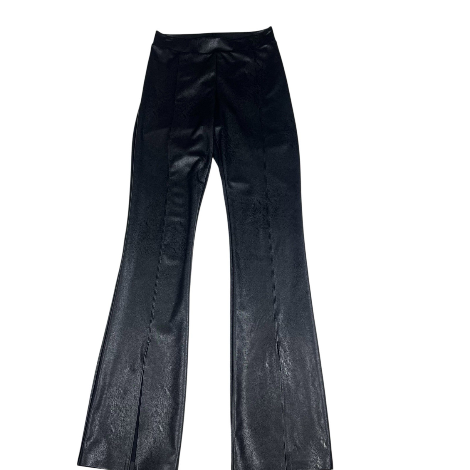 Zara Women’s Black Faux Leather Pants Wide Leg Flare Side Zip Size S