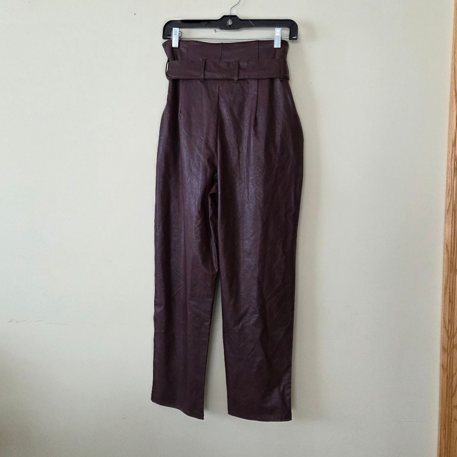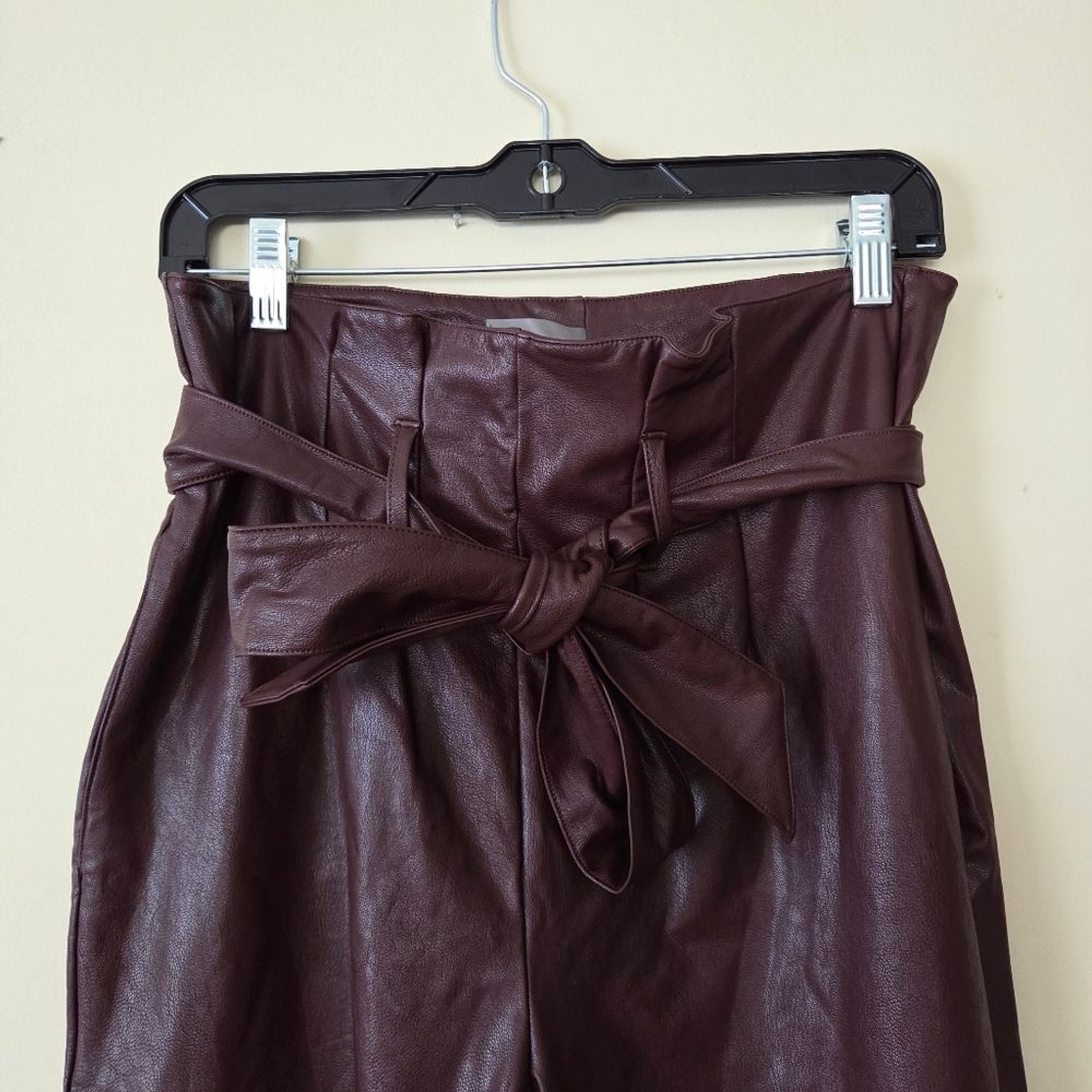 beautiful and classy faux leather paperbag pants. removable belt 4 way stretch color: oxblood perfect for work