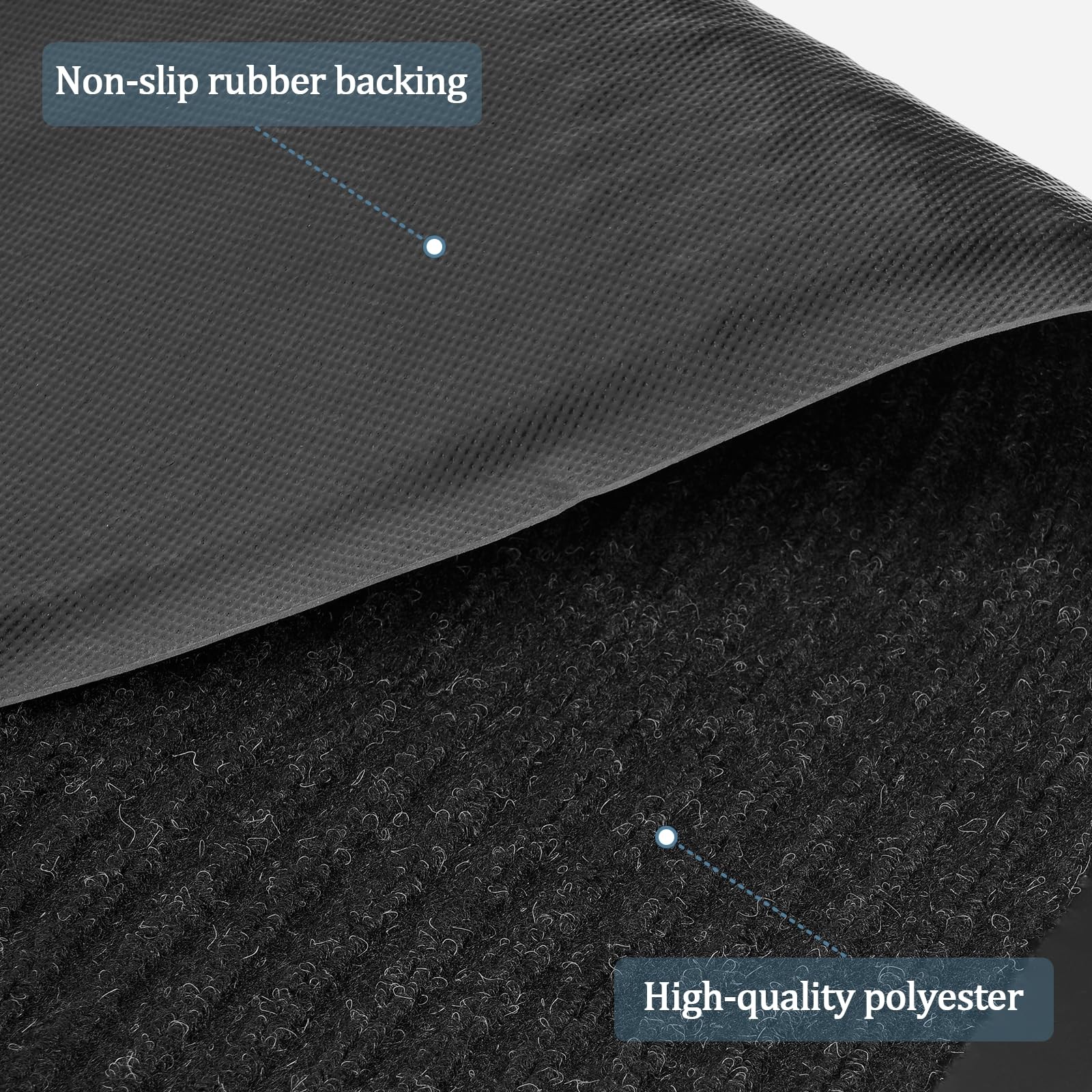 Product Dimensions: 118"L x 35.43"W Item Thickness: 0.27 Inches Item Weight: 16.53 pounds Material: Polyester , Rubber Pattern: Striped Pile Height: Low Pile Back Material Type: Rubber Color: Black Indoor/Outdoor Usage: Indoor/Outdoor Is Stain Resistant: Yes Shape: Rectangular Special Feature: Waterproof, Anti Slip, Fade Resistant, Stain Resistant, Washable Room Type: Hallway Special Feature: Pet Tools Rug Form Type: Doormat Style: Classic Min. Required Door Width: 37 Inches Number of Pieces: 1 Deep Grooves Capture Mud and Moisture: Our commercial entrance rug is made of high quality polyester and rubber. Designed with a raised ribbed surface to help capture mud, dirt, moisture and debris deep within its grooves; perfect for those rainy and muddy days Non-Slip Bottom: The commercial hallway rug has a non-slip and stain-resistant heavy-duty rubber backing that keeps floor mats in place and prevents moisture leakage. Flat on the floor and will not turn up at the corners, or move on any hard surface, keeps the mat in place. Size: 3'x10', thickness 0.27" Durability and Stability: The indoor outdoor rug mat is designed for all weather conditions, both indoors and outdoors. Premium fabric dries quickly and resists staining and fading for long lasting use. Effectively remove dirt and soft enough to not damage your shoes or hurt your feet, but reliable for boots Ease of Cleaning: The outdoor floor mat is designed for easy to clean. You just use vacuum to clean it or shake it off. For deep clean, you can rinse it with garden hose and let it dry Widely Use: Our front doormat is used for all weather, from hot summer to cold winter, works as front door mat, outdoor door mat, welcome door mats, garage rugs and mats, indoor mats for entryway, shoe mat, dog doormat, floor mats, ect. It can scrap off mud, slush, grass or retain snow