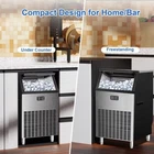 【Fast & Efficient Ice Making】Featuring a powerful compressor, the commercial ice maker can produce 265 lbs of ice per day (48 clear ice cubes for one cycle in just 12 to 18 minutes), and comes with a storage container for 55 lbs of ice. Therefore, the nugget ice maker definitely will meet your daily needs for whole family. 【Easy Operated Ice Maker】The ice maker machine built with a LCD control panel, which features on/off, auto clean, and time setting functions. Besides, If the ice machine is running continuously, it will cut itself off when filled with ice. Then it will turn itself back on as needed to replace any melting ice and keep itself full. 【Heavy-duty & Compact Construction】This ice machine is made of powder-coating stainless steel, which ensures the sturdiness for long term use. Besides, designed with compact structural feature(21.9"x17.1"x32.8"), the ice machine allows you to install anywhere. Note:The drain is gravity fed so your drain system must be BELOW the drain line (located just a few inches above the bottom of the machine). 【Adjustable Ice Cube Thickness】If you worry about the ice cubes being melting very quickly, then our commercial ice maker is the way to go. There are different thicknesses of ice can be made by adjusting the time of the ice-making. But if you'd like to keep ice cubes for a long time, you'd better keep them in the freezer. 【Wide Range of Applications】The machine produces crystal clear ice cubes that work great for applications in home bar, restaurants, bars, hotels, grocery stores and more(not for outdoor use). Combining sleek finish and practical functions, our ice maker will be your ideal choice! Fresh your beverage with our ice maker The ice maker machine will make much more ice cubes according to your need. Our ice maker features superior compressor to ensure high efficiency and good heat insulation to make safe running state. The control panel is easy to understand and operate with a self-cleaning function to relieve your burden. Features: Automatic LCD Panel Control Automatic self-cleaning function Fast and efficient ice making Automatic Protection Easy Installation Notice: If the ice machine is brought in from outside in winter, give it a few hours to reach room temperature. The drain is gravity fed so your drain system must be BELOW the drain line (located just a few inches above the bottom of the machine). Package Includes: 1 x Ice Maker 1 x Ice Scoop 1 x Water Inlet Hose 1 x Drain Hose 2 x Connectors 1 x User Manual