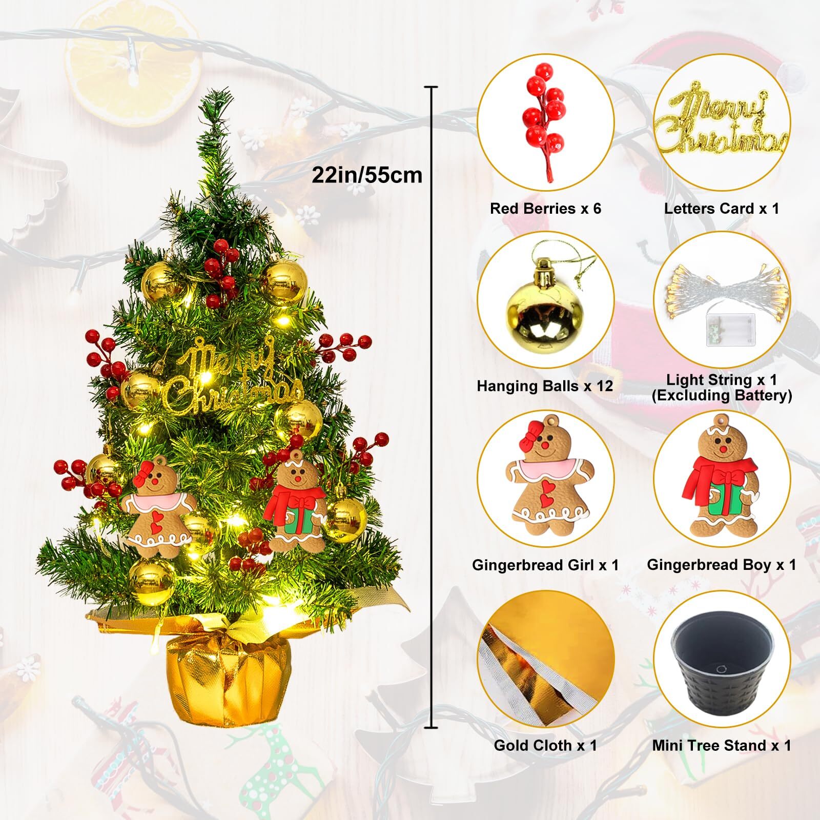 Small Mini Christmas Tree 22 Inch with Light,Tabletop Miniature Pine Christmas Tree with Hanging Ornaments, Battery Operated Artificial Xmas Tree, DIY Christmas Holiday Party Decorations 【Package Includes】-The Xmas Tabletop Tree's size is 22 Inch, containing xmas tree*1,red berries*6,letters card*1,hanging balls*12,light string(Excluding Battery)*1,gingerbread man*2, gold cloth*1,mini tree stand*1. 【Perfect Christmas Choice】- This Xmas Table top tree will give you a wonderful festive memory. it will be the one christmas decoration. It is also awesome gift for your friends, family . 【Versatile centerpiece decor】- Perfect as a table centerpiece or decorative addition to a nightstand, countertop, side table, or office desk due to its compact design. Experience the spirit of the holidays in your home with this lovely tabletop Christmas tree. 【LED Lights Battery Oprated】 - There is a light string, and is warm white ,the light string is 2 meters.Operated by 3 AA batteries(included). 【service】 - The Mini Christmas Tree you receive have been transported for a long distance, so you need to manually arrange the branches and ornaments.If there is any damage, or you are just satisfied.Please us. 1 Shipping We offer FREE shipping on all orders! We ship within Three business days of payment, usually sooner. We use a selection of shipping services such as UPS, FedEx, USPS etc., unable to choose a carrier. We only ship to the lower 48 states, no APO/FPO addresses or PO Boxes allowed. Sellers generally can’t change the shipping address that you provided at checkout. Local pickups and combined shipping options are not provided at this time. International buyers - please note: Import duties, taxes, and charges aren't included in the item price or postage cost. These charges are the buyer's responsibility. Return You can return a product for up to 30 days from the date you bought it by using the seller's FREE RETURN LABEL only. Any product you return must be in the same condition you received it and in the original packaging. International buyers - Rejection and return of the product requires the buyer to pay all shipping and return costs. Please return with the reason "Order mistake" or "Changed my mind" or "Does not fit" for a refund, which would be greatly appreciated. If the buyer wishes to return the items for a refund or replacement, please contact the seller to obtain a free return label. The refund or replacement will be processed using the tracking number of the return label, which will be provided solely by the seller. Other methods of return that have not been approved by the seller will not be processed for a refund or replacement. Payment We accept payment by any of the following methods: eBay Manage Payment Please pay as soon as possible after winning an auction, as that will allow us to post your item to you sooner! Feedback Customer satisfaction is very important to us. If you have any problem with your order, please contact us and we will do our best to make you satisfied. Please be aware that our products are stored and fulfilled by third-party warehouses and manufacturers across the United States (also known as third-party fulfillment or product sourcing). These companies are completely trustworthy, and we are confident in entrusting all of our valuable items to them for the safety and best delivery system for our store. Contact Us If you have any queries, please contact us via ebay. We usually respond within 24 hours on weekdays. Please visit our eBay store to check out other items for sale! Thank you for shopping at our store.