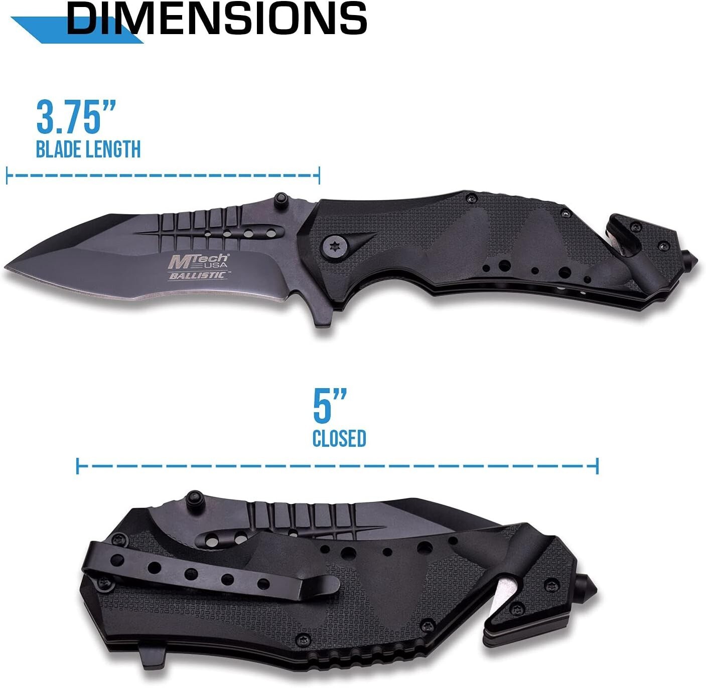 Versatile Folding Knife with Black Stainless Steel Blade - Ideal for Outdoors ‹ › ‹ › ‹ › ‹ › ‹ › ‹ › ‹ › ‹ › ‹ › ‹ › ‹ › Versatile Folding Knife with Black Stainless Steel Blade An essential companion for the outdoor enthusiast, our Versatile Folding Knife combines functionality with an elegant design, ensuring you are always prepared for any situation. Key Features: Rapid one-handed deployment thanks to the spring assist mechanism. Locks securely into place with a reliable liner lock for safety during use. 3.75-inch black stainless steel blade with a thickness of 3.5mm, ensuring durability and strength. Easy and fast access with a thumb stud for seamless deployment. Stylish black aluminum handle featuring a sleek cut-out design. Equipped with a pocket clip for convenient and safe carry. Includes a seatbelt cutter and glass breaker for emergencies, making it a versatile rescue knife. Compact size: measures 5 inches when closed, perfect for pocket storage. Embrace Adventure: This folding knife is more than just a tool—it's a lifeline in unexpected circumstances. Whether you’re camping, hiking, boating, or simply enjoying the outdoors, this knife stands ready to assist you in a variety of tasks. From cutting ropes and preparing food to handling emergencies, its robust features are designed to tackle any challenge. Why Choose Our Versatile Folding Knife? Designed for those who appreciate both style and function, this knife offers a perfect blend of elegance and practicality. The thoughtful integration of a seatbelt cutter and glass breaker ensures that you’re equipped for emergencies, while its lightweight construction allows for easy portability. Experience the reliability and craftsmanship suited for your adventurous spirit with our Versatile Folding Knife. Upgrade your outdoor experience—secure your Versatile Folding Knife today! Shipping Free & Fast Shipping - We offer free shipping to most of the USA with a normal delivery time of 3-7 days. However, due to the current situation, additional delivery time (up to 3 weeks) may be required for some items. Alternative Carriers - We may use alternative carriers (e.g. USPS, FedEx, UPS, etc.) to ensure your package arrives safely and on time. Due to the use of multiple carriers, we are unable to provide a tracking number automatically. Handling Time - Orders are processed and shipped within 1-2 business days of receiving cleared payment. Shipping Restrictions - Shipping to Alaska, Hawaii, Puerto Rico, Guam, and other US territories may incur shipping charges or delivery restrictions. Please contact us before ordering, or your order can be refunded/cancelled. State Restrictions - There may be restrictions based on your state of purchase. For example, certain items may not be shipped to California due to state regulations. Contact for Tracking Updates - If you require tracking updates or have any concerns about the delivery of your order, please feel free to contact us, and we will be happy to assist you. Return 30-Day Hassle-Free Returns - We want you to be completely satisfied with your purchase. If you are not, you can return the item within 30 days of receiving it for a full refund or exchange. Easy Return Process - To start a return, simply contact us and we will provide you with a prepaid return shipping label and detailed instructions. Restocking Fee - There are no restocking fees for returns. However, the buyer is responsible for return shipping costs if the return is not due to a seller's error. Refund Processing Time - Refunds will be processed within 5 business days of receiving the returned item in its condition. Payment We accept all major credit cards, PayPal, and Apple Pay for your convenience. Your payment information is secure and encrypted to ensure a safe and seamless transaction. Please complete your payment within 3 days of purchase to avoid any delays in shipping. Feedback Your feedback is extremely important to us. We strive to provide the best products and customer service possible. If you are satisfied with your purchase, please take a moment to leave us a positive review. If you have any concerns or issues with your order, please contact us before leaving negative feedback. We are committed to resolving any problems and ensuring your satisfaction. Contact Us If you have any questions or concerns, please feel free to out to our customer support team. You can contact us through the eBay messaging system. We are available Monday to Friday, 9:00 am to 5:00 pm EST, and we will do our best to respond to your inquiry within 24 hours. Buy it now and enjoy a pleasant shopping experience! : Spring Assisted Knife Blade Type: Clip Point Tools: Spring Assisted Knife Model: Spring Assisted Knife Number of Blades: 1 Color: Black Type: Tactical Handle Material: Aluminum Opening Mechanism: Assisted Blade Edge: Plain Lock Type: Liner Blade Range: 2.76 - 4in. Blade Material: Stainless Steel Dexterity: Ambidextrous