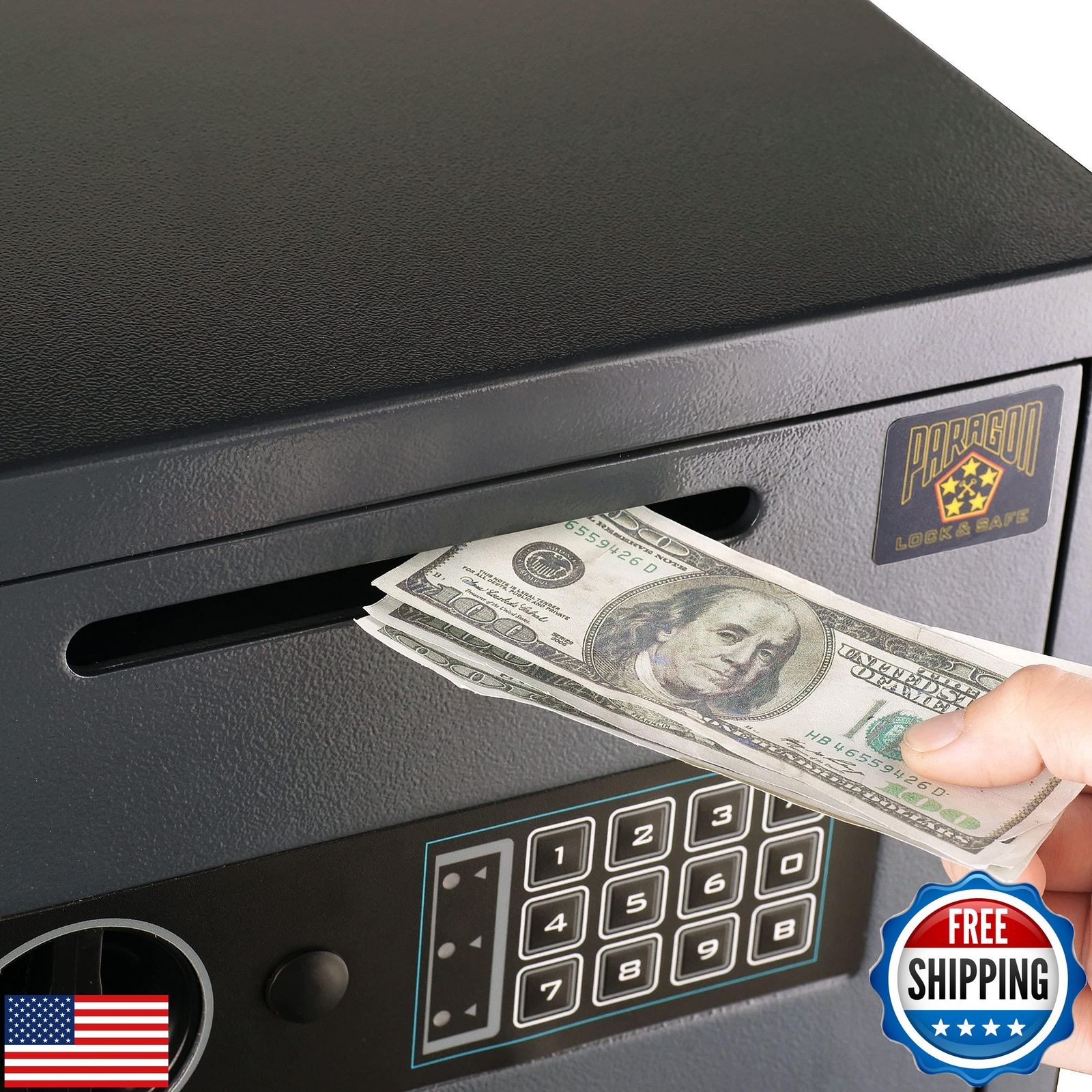 Drop Safe - Digital Safe Compact Steel Money Security Box with Keypad - Deposit Cash Easily – For Home or Business by Paragon Safe - Black Features DEPOSITORY SAFE – The money drop box can conveniently be utilized in your home or business and is designed with a front slot to easily deposit money or coins. This safe deposit lock box can be mounted on your wall or floor for added security. LED KEYPAD – This cash drop box is protected with a LED keypad that can be programmed with master and guest codes 3-8 digits long. Equipped with 2 manual override keys, you never have to worry about being locked out of your safe if you forget the code. SECURE CASH STORAGE – The slot safe is constructed of 11-gauge solid powder-coated steel with concealed inside hinges for extra security. Enjoy the peace of mind in knowing that your valuable assets are locked up safely. AUTOMATIC LOCK – After 3 incorrect entries, the built-in alarm on the money lock box with slot will sound for 20 seconds, and after 3 more incorrect entries, the drop safe for business will sound for 5 minutes, alerting you to attempted access. PRODUCT DETAILS – Materials: Powder-Coated Steel. Dimensions: (L) 13.75” x (W) 10” x (H) 10”; Interior: (L) 13.5” x (W) 7.25” x (H) 9.5”; Slot: (W) 6” x (H) 0.5”. Weight: 22lbs. 4AA Batteries and Anchor Bolts Included. Color: Dark Gray. Shipping Free & Fast Shipping: We offer free shipping to most of the USA with a normal delivery time of 3-7 days. However, due to the current situation, additional delivery time (up to 3 weeks) may be required for some items. Alternative Carriers: We may use alternative carriers (e.g., USPS, FedEx, UPS) to ensure your package arrives safely and on time. Due to the use of multiple carriers, we are unable to provide a tracking number automatically. Handling Time: Orders are processed and shipped within 1-2 business days of receiving cleared payment. Shipping Restrictions: Shipping to Alaska, Hawaii, Puerto Rico, Guam, and other US territories may incur shipping charges or delivery restrictions. Please contact us before ordering, or your order can be refunded/cancelled. State Restrictions: Certain items may not be shipped to California due to state regulations. Contact for Tracking Updates: If you require tracking updates or have any concerns about the delivery of your order, please feel free to contact us, and we will be happy to assist you. Return Policy 30-Day Hassle-Free Returns: If you are not completely satisfied with your purchase, you can return the item for free within 30 days of receiving it for a full refund or exchange. Easy Return Process: Contact us, and we will provide you with a prepaid return shipping label and detailed instructions. No Restocking Fee: There are no restocking fees for returns. However, the buyer is responsible for return shipping costs if the return is not due to a seller's error. Refund Processing: Refunds will be processed within 1 business day of receiving the returned item in its original condition. Payment We accept all major credit cards, PayPal, and Apple Pay for your convenience. Your payment information is secure and encrypted to ensure a safe and seamless transaction. Please complete your payment within 3 days of purchase to avoid any delays in shipping. Feedback Your feedback is extremely important to us. We strive to provide the best products and customer service possible. If you are satisfied with your purchase, please take a moment to leave us a positive review. If you have any concerns or issues with your order, please contact us before leaving negative feedback. We are committed to resolving any problems and ensuring your satisfaction. Contact Us If you have any questions or concerns, please feel free to reach out to our customer support team. You can contact us through the eBay messaging system. We are available Monday to Friday, 9:00 am to 5:00 pm EST, and we will do our best to respond to your inquiry within 24 hours. Thank you for supporting our small family business!
