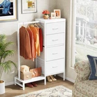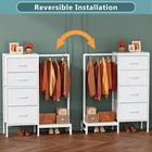 The Cloth dresser Drawer with Hanging Racks is a versatile 2-in-1 storage solution designed to maximize space efficiency. With one side dedicated to hanging clothes and the other featuring 2 large and 2 medium drawers, it offers 2.5 times more storage than standard cabinets with 4 drawers. This cabinet can accommodate over 200+ socks, 40 pairs of pants, and 60 t-shirts, while also providing room for more than 3 pairs of shoes at the bottom. Its sturdy aluminum frame ensures stability and can store over 6 adult coats and around 10 long-sleeve shirts, with a weight of 50 lbs. The modern design makes it suitable for various spaces, including bedrooms, living rooms, and children's rooms. Additionally, it allows for flexible left or right installation based on your preference, complete with clear instructions and an installation video 【Dresser & Clothes Rack】2-IN-1 design maximizes space utilization. One side is for hanging clothes, while the other side drawers for storing various garments; 44'' Height taller than other 29''H 4-drawer small dresser and increase 3X space 【Larger Drawer&Storage Capacity】With 2 large+2 medium drawers, dresser for bedroom can store over 200+socks, 40+ pants, and 60+t-shirts. The bottom leaves more than 3 pairs of shoes storage space 【Sturdy and Stable】Made with robust alloy steel frame, this bedroom dresser is very stable. Tall Dresser with hanging rack can store over 6 adult coats, around 15 long-sleeve shirts, load capacity 50LB 【Contemporary Design】Multifunctional tall kids dresser adds a touch of class to any room, not only for bedrooms, living rooms, kids' rooms, nursery and entryways, it complements various spaces and furniture styles. Specially designed anti-tip kits is child friendly 【Reversible Installation】This 4 drawer closet dresser can be installed reversible based on your preference. It comes with clear installation instructions and includes an installation video