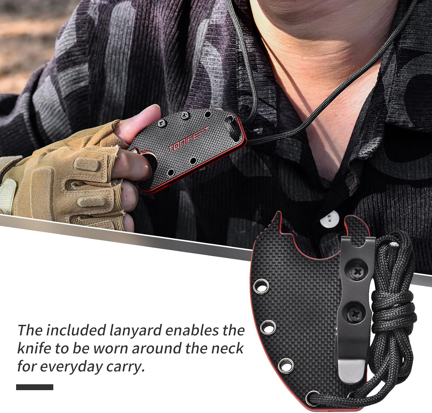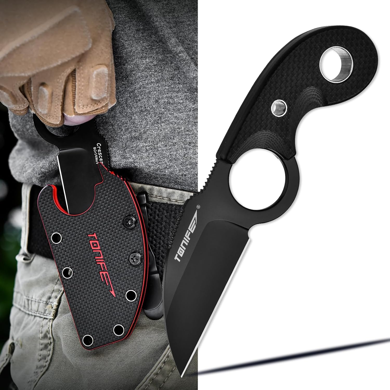Small Knife with Sheath: TONIFE Crescent is a perfect small fixed blade knife suitable for your EDC equipment; The total length is 5.51 inches. Lightweight EDC Knife: EDC knife is a great everyday carry knife; It can be used as a belt knife or pocket knife, and you can quickly remove this small knife from the sheath to prepare from time to time. Full Tang Fixed Blade Knife: Durable 8Cr14MoV stainless steel construction handles a variety of work tasks as a backup knife; Full tang blade makes the knife more durable. Fixed Blade Knife with Textured G10 Handle: The G10 handle of the fixed blade is in line with the design of ergonomics. It has the characteristics of durability, weather resistance, and excellent grip. It is easy to maintain Fixed Blade Knife Sheath -Sheath is made of G10. The solid and lightweight G10 sheath can ensure excellent protection for the blade. The adjustable sheath clip design allows the small knife to be clipped to a belt, boots, pocket, or thin collar for easy carrying. Product Description TONIFE Crescent Full Tang Knife This full-tang knife is very suitable for outdoor work. It can be used as an EDC fixed blade knife, camping knife, belt knife and self-defense knife. The sheath design can protect the blade at any time, so you have a sharp knife. HKT2022 Series Blade steel: 8Cr14MoV Blade length: 2.17" Total length: 5.51" Weight: 2.5oz.(71 g) Handle: G10 Color: Black/Green/Warm Sand Sharp Blade The blade of this fixed blade knife is designed with 8Cr14MoV stainless steel, which is not easy to rust, stain-resistant, sharp, and not easy to break. It is no problem to cut ropes, cut branches, and cut fruits during outdoor activities. It is a good helper for outdoor activities that can be used with confidence. G10 Handle This knives for men features a G10 handle that is durable, weatherproof, has a strong grip, is lightweight, and is easy to maintain, allowing it to be used for long periods of time without causing discomfort to your hands. Knife Sheath Clip The belt knife is equipped with a knife sheath clip. The removable knife sheath clip design can easily clip the pocket knife to a thin collar, pocket, wallet, or pants, allowing you to carry it with you and not easily lose it. Knife Sheath The knife comes with a knife sheath and a rope. The knife sheath can protect the blade at any time, making it less likely to be damaged. The rope can be used to hang the straight knife on your body at any time, which is convenient for carrying and can also prevent loss. Fixed Blade Knife With Sheath The full tang knife, the knife sheath and knife sheath clip work together to highlight its portability for outdoor activities. You can hang it on your body at ordinary times and take it out directly for use when necessary. Fast cutting It can quickly cut branches, paper, food, ropes, wood, etc. It is the best companion for outdoor survival.