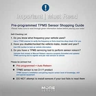Compact TPMS Tire Pressure Sensors 4-Pack with 433MHz Frequency for 850+ Models Compact TPMS Tire Pressure Sensors 4-Pack with 433MHz Frequency for 850+ Models Compatibility inspection is required prior to installation; we recommend using a service scanner to test read the sensors as pointing to specific vehicle model and year. DO NOT attempt to install sensors if they're not responding to the scanner. Excellent Signal Strength: MOREsensor is proven to work for short to long length vehicles, pickup trucks, off-road, and winter tires. Excellent Battery Durability: Our Replacement Tire Sensors last 8-10 years under normal usage. Reprogrammable: MOREsensor can be programmed/reprogrammed/modified by ATEQ branded TPMS programmer (PT46/PT47/VT56). You are COVERED: MOREsensor Compact Series comes with a 5 Year limited, please consult us for more information. Top Seller | Fast, Reliable Shipping | Always Free | 1-Day Processing | Customer Support You Can Trust Questions? We?re Happy to Help We?re committed to giving you a five-star experience from start to finish. Whether you?re just browsing or have already made a purchase, we?re available to answer your questions quickly and clearly. All communication is handled through eBay?s messaging platform. We take pride in providing fast, honest replies?usually within 24 hours, if not sooner. Buy with Confidence Each item is carefully inspected before it ships to make sure you receive exactly what you ordered, in the best possible condition. And if you?re not 100% satisfied, we?ll do everything we can to make it right . We don?t waste time?your order ships within 1 business day of receiving payment, and we use trusted shipping services like USPS and UPS to ensure it gets to you fast. We never charge for shipping ?it?s always free . ? Due to lighting and screen differences, the actual color may differ slightly from what you see online. Thanks for understanding! Actus_Corp