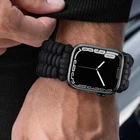 【Compatibility】The paracord bands are compatible with the 42mm, 44mm, 45mm, 46mm, and 49mm Apple Watch Ultra/Ultra 2/Series 10/9/8/7/6/5/4/3/2/1/SE/SE(2022 2nd Generation). They are NOT suitable for the 41mm, 40mm, or 38mm models. Please ensure you confirm your Apple Watch model before making a purchase. 【Paracord Apple Watch Band】Hand-made with high-quality paracord 550 and stainless steel hardwares, tactile and tough. The survival iwatch band can play an important role in emergency situations, such as stabilize a tent to build a shelter, create hunter traps, hiking rope and so on. Must-have bands for those who love adventure and outdoors. 【Apple Watch Band for Men】Featuring a robust nylon strap design for effortless and swift adjustment. Available in three sizes: M for 6.5"-7.0", L for 7.0”-8.0” wrist sizes, and XL for 8.0”-9.0” wrist sizes. It securely fastens, ensuring your Apple Watch stays snugly in place without issues of sliding, loosening, or unbuckling. Extremely comfortable to wear. 【Rugged Apple Watch Sport Band】Rugged braided bands will personalize iphone watch to be unique, wear out your own style. Allowing sweat to escape, drying fast and easy to clean, making you feel comfortable and breathable. 【Easy Installation】Solid metal adapters on both ends ensure a precise and secure lock for your iWatch. If you encounter any issues while wearing our bands, provides a 90-day warranty for a replacement, along with 24-hour quick-response support. Please don't hesitate to click 'contact seller' for assistance.