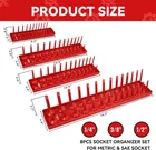 Complete 8PC Socket Holder Set for SAE & Metric Sockets - Clutter-Free Solution ‹ › ‹ › ‹ › ‹ › ‹ › ‹ › ‹ › ‹ › ‹ › 8PC Socket Holder Set for SAE & Metric Sockets Say goodbye to chaos and hello to efficiency with our Complete 8PC Socket Holder Set, the clutter-free solution for your toolbox. Features: Eliminate toolbox clutter and save time with organized, dedicated socket trays. Fast recognition with clearly marked socket sizes for instant identification. Red SAE and black Metric trays effortlessly distinguish between your tools. Constructed from durable ABS material to protect against oil and gas. Extended base design securely holds each socket in place. Fit for SAE sizes from 1/8” to 5/8” (1/4" drive), 1/4” to 1” (3/8" drive), 3/8” to 1-1/4”(1/2" drive). Metric sizes cover 4mm to 15mm (1/4" drive), 6mm to 20mm (3/8" drive), 10mm to 27mm (1/2" drive). Supports storing both deep and shallow sockets simultaneously with a dual rail design. Compact size with a maximum peg height of 3.7 inches fits most tool drawer organizers. Mountable trays for wall or workstation to enhance workspace efficiency. Benefits: Keep your workspace neat and tidy, allowing you to focus on your tasks. Instantly find the socket you need without wasting precious time. Durable construction ensures a long-lasting, reliable organizational system. Why choose our 8PC Socket Holder Set? Organizing your tools has never been easier! With this Complete 8PC Socket Holder Set, you can effortlessly tidy up your toolbox and find what you need at a moment's notice. Our thoughtfully designed trays are built to endure, ensuring your sockets remain safe from oil and gas exposure while being easily accessible. The dual rail system allows you to store both deep and shallow sockets simultaneously, expertly increasing your efficiency. Transform your workspace with our elegant and practical socket holder set. Invest in organized excellence today! Shipping Free & Fast Shipping - We offer free shipping to most of the USA with a normal delivery time of 3-10 businessdays. However, due to various situations, additional delivery time (up to 3 weeks) may be required for some items. Alternative Carriers - We may use alternative carriers (e.g. USPS, FedEx, UPS, etc.) to ensure your package arrives safely and on time. Due to the use of multiple carriers, we are unable to provide a tracking number automatically. Handling Time - Orders are processed and shipped within 1-5 business days of receiving cleared payment. Shipping Restrictions - Shipping to Alaska, Hawaii, Puerto Rico, Guam, and other US territories may incur shipping charges or delivery restrictions. Please contact us before ordering, or your order can be refunded/cancelled. State Restrictions - There may be restrictions based on your state of purchase. For example, certain items may not be shipped to California due to state regulations. Contact for Tracking Updates - If you require tracking updates or have any concerns about the delivery of your order, please feel free to contact us, and we will be happy to assist you. Return Please see our ebay return policy. We do not accept return on most products. This is to avoid customers mis-using ebay returns. All sales are final. Please be sure to check the return policy listed at the top of the listing. In rare cases, we may accept returns, if the buyer pays both ways shipping and 20% restocking fee. If you are un-sure of return policy of a particular item, please ask before buying. Payment We accept all major credit cards, PayPal, and Apple Pay for your convenience. Your payment information is secure and encrypted to ensure a safe and seamless transaction. Please complete your payment within 3 days of purchase to avoid any delays in shipping. Feedback Your feedback is extremely important to us. We strive to provide the best products and customer service possible. If you are satisfied with your purchase, please take a moment to leave us a positive review. If you have any concerns or issues with your order, please contact us before leaving negative feedback. We are committed to resolving any problems and ensuring your satisfaction. Contact Us If you have any questions or concerns, please feel free to reach out to our customer support team. You can contact us through the eBay messaging system. We are available Monday to Friday, 9:00 am to 5:00 pm EST, and we will do our best to respond to your inquiry within 24 hours. Buy it now and enjoy a pleasant shopping experience! UPC: Not Set Item Width: Not Set Item Length: Not Set Item Height: Not Set Item Diameter: 3.7 in Item Weight: 3.08 lb Unit Quantity: 8 Features: Stackable,Eliminate toolbox clutter,Durable ABS material,Oil and gas resistance,Extended base for secure hold,Dual rail design Brand: Unbranded Type: Tool Storage Accessory Number of Items: 1 Number of Drawers: 0 Material: ABS Size: Adjustable Mounting: Wall Mounted Model: Not Set MPN: Not Set Capacity: 226 sockets Color: Red Country/Region of Manufacture: Not Set Finish: Durable Manufacturer Warranty: Not Set Unit Type: lb