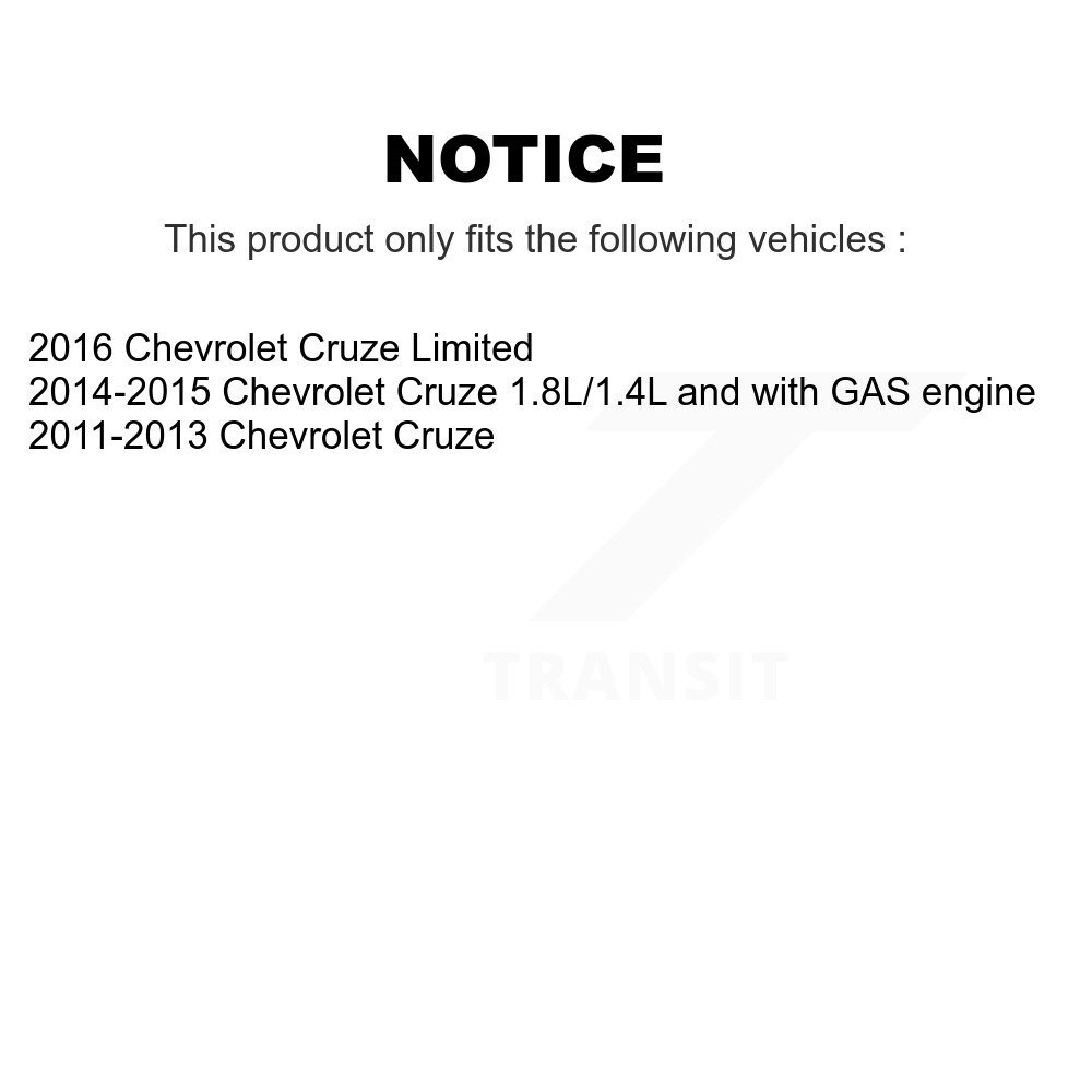 eBay Listing Template Search Required Parts View Our Feedback Contact Us Front Rear Brake Caliper Rotors Drums Ceramic Pads Kit (8Pc) For Chevrolet Cruze Product Description Description: Brand: Transit Auto Warranty: 1 Year Part Type: Disc Rotors and Brake Pads Kit Placement on Vehicle: Front and Rear CMX new calipers are manufactured to exacting OE standards to ensure a perfect performance for the life of the vehicle TQ OE-matched friction material gives our brake shoe the ideal balance between tensile and hardness and provide consistent wear, long life, and quiet operation Exclusive G3000 heat-flowed castings steel give our rotors the ideal balance between tensile and hardness and provide consistent wear, long life, and quiet operation Precision ground maximizes friction-to-drum contact Item specifics: Includes (8 pcs): 2x Front Disc Brake Caliper (Both Side) 2x Front Disc Brake Rotor (Both Side) 1x Front Ceramic Brake Pad Set (Hardware Included) 2x Rear Brake Drum (Both Side) 1x Rear Drum Brake Shoe Set Interchange Part Numbers: 18A5308; SLB2184; 2C-5308; 18-P5308; 18-B5308; BC62202; SC1197; C62202; 2730XA; 99-17430A; 11-26089-1; FRC12319N; FRC12319C; FRC12319; CN1509; 18A5309; SLB2185; 2C-5309; 18-P5309; 18-B5309; BC62201; SC1198; C62201; 2730XB; 99-17430B; 11-26090-1; FRC12320N; FRC12320C; FRC12320; CN1510; AC90095; AR90095; CR90095; PR90095; 55185; YH321761C; YH321761; 120.62130; 121.62130; BR900920; 55215-D; 55215; 2488821035; 488821035; 7488821035; 900920; Q55185; 580770; BD180439; PTC1522; 8697; 8730; PF8697X; QE8697X; SG8697X; SS8697X; D1497; D1522; 1497; 1522; AD90655; CD90655; PD90655; 80132; YH321759C; YH321759; 122.62040; 123.62040; BD920154; 85100; 4406732; 920154; Q80132; 97812; BD180492; 992; NB992; 992B Confirm Your Vehicle Compatibility Year Make Model Application Notes 2011 Chevrolet Cruze Position: Front and Rear; 2012 Chevrolet Cruze Position: Front and Rear; 2013 Chevrolet Cruze Position: Front and Rear; 2014 Chevrolet Cruze Engine: 1.4L L4 GAS; Position: Front and Rear; 2014 Chevrolet Cruze Engine: 1.8L L4 GAS; Position: Front and Rear; 2015 Chevrolet Cruze Engine: 1.4L L4 GAS; Position: Front and Rear; 2015 Chevrolet Cruze Engine: 1.8L L4 GAS; Position: Front and Rear; 2016 Chevrolet Cruze Limited Position: Front and Rear; To confirm that this part fits your vehicle, enter your vehicle's Year, Make, Model, Trim and Engine in the eBay Compatibility Table. Also review the notes section in the compatibility chart for additional specifications about this part. Contact DT Auto Parts If you have any questions, you may reach us via our eBay Contact Form . Shipping & Handling Shipping Service: Please refer to shipping section Shipping Cost: Please refer to shipping section Order Processing Time: 1 Days Returns Return shipping paid by: Seller Item must be returned within: 30 Days Refund will be given as: MoneyBack About Us We are a small family business of auto parts and auto parts accessories. Our mission is to provide quality products, best customer care, and fast shipping. Whether you are doing maintenance, a long-term automotive project, or just trying to get your vehicle running, count on DTautoparts to help you with your small or big project. California Proposition 65 WARNING: This product may contain chemicals known to the State of California to cause cancer and birth defects or other reproductive harm. For more info go to www.p65warnings.ca.gov 2024 DT Auto Parts Inc. All Rights Reserved.