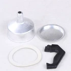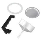 Product Description Features: *Function: Designed specifically for espresso pots, this coffee Moka pot accessories replacement is a perfect fit, optimal functionality. *Easy Installation: With its user-friendly design, this replacement handle can be easily installed without any hassle or complications. *Perfect Replacement: This set of replacement parts serves as the solution for your broken or worn-out espresso pot accessories, restoring their full functionality. *Multiple Sizes: Available in a range of sizes, including Cup, 3 Cups, 6 Cups, 9 Cups, and 12 Cups, to cater to your specific brewing needs and preferences. * and Reliable: Crafted with high-quality materials, these replacement parts are built to last, guaranteeing durability and reliable performance throughout extended use. Specifications: *Part Name: Mocha Pot Accessories Set *Material: Aluminum, Plastic *Size: Cup, 3 Cups, 6 Cups, 9 Cups, 12 Cups *Color: Silver+Black Package Content: handle*+ funnel*+ rubber ring*+ filter* Note: . The real color of the item may be slightly different from the pictures shown on website caused by many factors such as brightness of your monitor and light brightness. 2. Please allow slight manual measurement deviation for the data. Payment Payment must be completed within 5 days. If you have any problems about payment, please contact us via ebay message. Delivery details We only ship to confirmed ebay Order addresses. Please comfirm that your Order address is in line with your shipping address. Please kindly note that the c ombined shipping is not provided because the shipping fee is calculated by weight. Also, the each additional item means exactly the the same color and size. It takes about 7 -15 working days to US; about 10-30 working days to other countries. Transit time may be a little delayed because of the bad weather and customs inspection . If you do not receive your item within 30 working days since payment finished, please contact us immediately for further assistance. Contact us We strive for 100% customer satisfaction! Positive Feedback is very important to us. If you have any questions, p lease feel free to contact us via "Ask seller a question" . We will reply your email within 24 working hours.