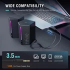 [Unleash Immersive Gaming Audio] Whether you're gaming in intense firefights on the battlefield or unraveling the dialogue of a adventure, the computer speakers for gaming deliver sound clarity and depth to capture details with precision. You will pinpoint enemy movements and react swiftly to environmental cues via immersive audio. RGB PC speakers give you fully immersive feeling in the virtual world. [Speaker Drivers for Immersive Gaming] The desktop PC speakers boast drivers that deliver a rich and dynamic sound stage that draws you deeper into your gaming world. You will hear the faintest footsteps of approaching enemies, or feel the rustle when navigating the dense jungles of an adventure game, or experience the subtle nuances of a cinematic storyline, The 3.5mm speakers heighten immersion and makes sound transmission more dynamic. [Controllable RGB for Gaming Ambiance] Elevate your gaming setup to the next level with gaming speakers for desktop computer featuring controllable RGB with 6 kinds of dynamic modes and 7 color options. The LED speakers adds a dynamic visual dimension to your gaming experience. Tailor your gaming environment to match the mood and atmosphere of more scenario, amplifying immersion and enhancing overall gaming enjoyment. [Volume Control at Your Fingertips] PC monitor speakers feature intuitive volume and mute buttons, providing effortless control over your audio experience. When you're deep in the heart of a tactical shooter, coordinating with teammates, turn up the volume to amplify the intensity of the battlefield. A gripping adventure game with whispered conversation stimulate gaming progress. Mute button allow instant silence elevating your overall immersion and enjoyment. [3.5mm Aux Connectivity] Powered by USB connector, the wired computer speakers with 3.5mm aux-in compatibility ensure easy connection with computer, monitor or mobile phone. You can hunch over your computer monitor or lounge with your phone in hand, diving into an intense gaming session. The PC speakers gaming provide a versatile audio solution for your gaming needs to immerse yourself in the action and adapt to your setup. [Friendly Cable Uses] Easily connect these laptop speakers to your computer, monitor or phone without hassle through the length of 6ft (1.8m) cable between the speakers and devices. There is no more worrying about limited space or awkward positioning. The cable length of 5ft (1.5m) between the two aux speakers allows you to place the speakers more conveniently, as a way to be placed on the left and right ends of the computer screen and from other directions of the sound quality effect.