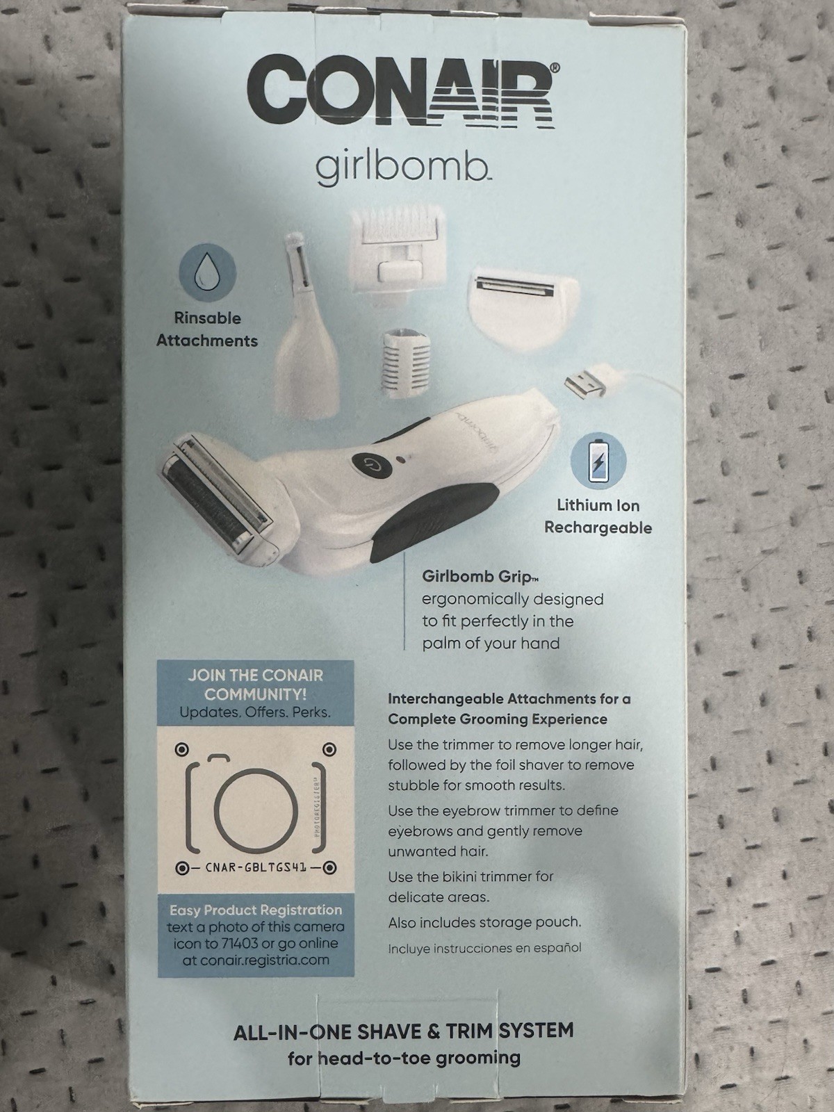 Conair Girlbomb Women's Cordless Body Shaver & Trimmer, Rechargeable