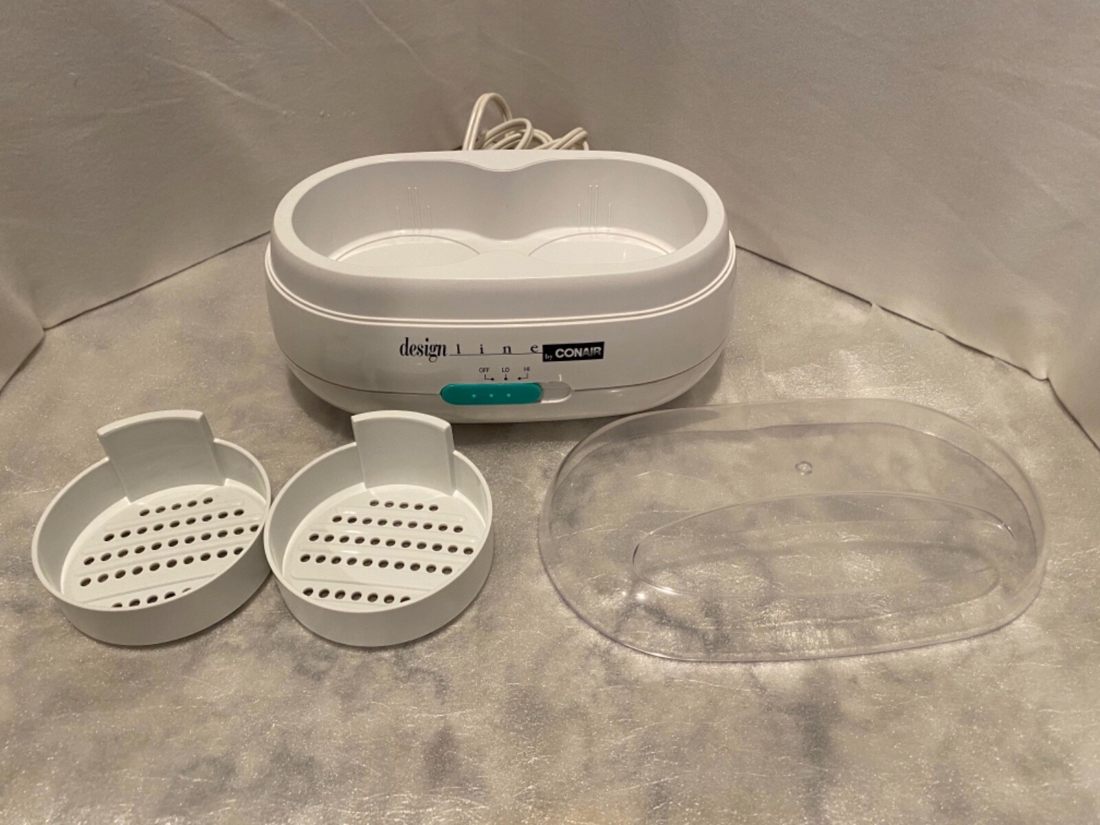 Good clean working condition. The Design Line Jewelry Cleaner by CONAIR uses gentle, vibrating action to thoroughly clean most jewelry. Two lift-out baskets make it easy, and can be removed to let you clean eyeglasses. Use with any mild liquid detergent to quickly and easily put back the shine the environment takes away.