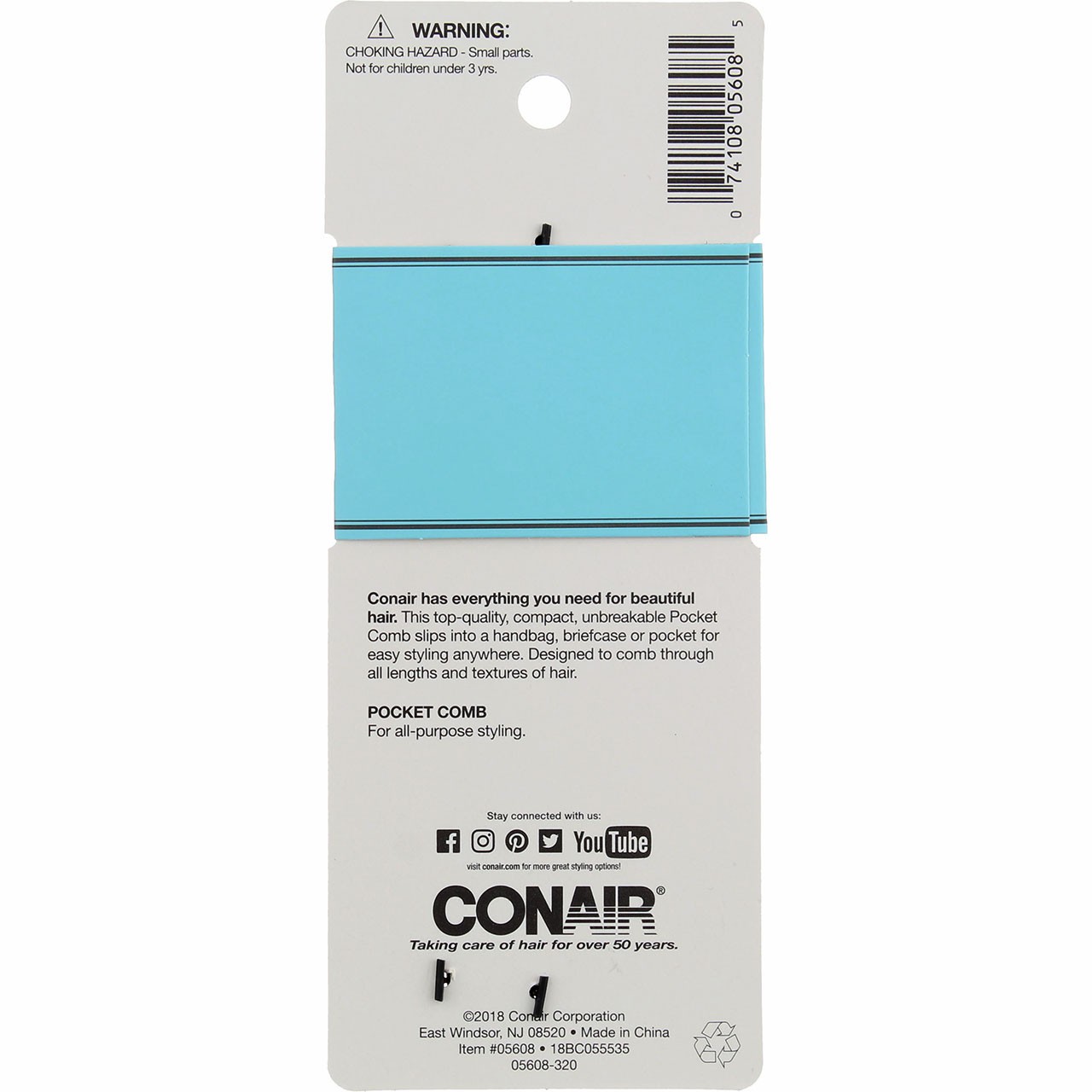 Product Description By using these products everyone can feel the real capability and strength in them. These products are named for its quality durability and stability. Find Hair Styling Accessories And Tools at Target! Conairs carded pocket comb is great for taking with. Product of Conair Pack of 2 Product Description By using these products everyone can feel the real capability and strength in them. These products are named for its quality durability and stability. Find Hair Styling Accessories And Tools at Target! Conairs carded pocket comb is great for taking with. Product of Conair Pack of 2 Warnings Disclaimer The product descriptions and instructions provided by Vitabox are for informational purposes only and are qualified in their entirety by the information available from manufacturers of the products. You should carefully read all product packaging, and contact the manufacturer with any questions before using a product. While we endeavor to ensure that product descriptions are current, manufacturers sometimes change their products. We are not liable for inaccuracies or misstatements about products. We do not provide medical advice or recommendations. You should not use the information provided by Vitabox for diagnosing or treating a health problem or disease. If you have or suspect that you have a medical problem, immediately contact your health care provider. Information and statements regarding dietary supplements have not been evaluated by the Food and Drug Administration or any other government agency and are not intended to diagnose, treat, cure, or prevent any disease. Disclaimer The product descriptions and instructions provided by Vitabox are for informational purposes only and are qualified in their entirety by the information available from manufacturers of the products. You should carefully read all product packaging, and contact the manufacturer with any questions before using a product. While we endeavor to ensure that product descriptions are current, manufacturers sometimes change their products. We are not liable for inaccuracies or misstatements about products. We do not provide medical advice or recommendations. You should not use the information provided by Vitabox for diagnosing or treating a health problem or disease. If you have or suspect that you have a medical problem, immediately contact your health care provider. Information and statements regarding dietary supplements have not been evaluated by the Food and Drug Administration or any other government agency and are not intended to diagnose, treat, cure, or prevent any disease.