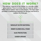 What is a Sticky Holster? Since our inception, we have developed these holsters into a modular system, where you can use them IWB, in your pocket, on your ankle using our ankle rig, and for police officers, on your tactical/armored vest, etc. They don't come with clips or loops to secure them in place, as the outer "sticky" skin adheres to your waistband, undergarments and/or your skin. The outside skin is a super non-slip material that, with a little pressure, adheres to just about anything. That outer material combined with the inner closed-cell foam and the inner liner keeps your and the holster securely in place. In the pocket, it works like any other pocket holster. However, when you pull the , the outer layer grabs the inside of your pocket. Our modular products use the same "sticky" material against itself to hold the holster and in place. In addition, with use and body heat, your Sticky Holster will conform to your particular , making a custom fit. LG-5 LARGE is designed for large/long revolvers up to 4” barrel. It has an ambidextrous fit for both right and left-handed users. LG- 5 LARGE fits the Following : *Taurus Judge 45COLT 3 *Taurus Tracker 44MAG 4 *Taurus Tracker 357MAG 4 *Taurus Ultralite 44MAG 4 , Inc. stands by the quality of our holsters and accessories, which are 100% made in the USA. This IWB pouch features a high-performance, non-slip material that cleaves firmly to your skin and clothing, allowing it to stay in place reliably, even in dynamic situations. Furthermore, the inner layer is made of closed-cell foam that provides a snug fit that keeps your firmly in place. The LG-5 Large is designed to fit large/long revolvers, SAR .357, Taurus Tracker (large), Taurus Ultralite, and similar up to 4" barrels. It has an ambidextrous design that caters seamlessly to both left-handed and right-handed users, allowing for an effortless draw, regardless of your dominant hand. The concealment holster for pistols offers the ideal solution for discreetly carrying your sidearm, whether inside the waistband or in your pockets. Its unique design allows you to carry your effortlessly in a variety of clothing such as sweatpants, yoga pants, jeans, or virtually any apparel, with minimal printing and no bulky feeling. Say farewell to clips and loops. The revolutionary design of the LG-5 Large ensures that nothing gets in your way when drawing your firearm conveniently, especially in the most crucial situations. You can be confident that your holster stays in place with its non-slip material that adheres to your waistband, undergarments, or your skin. , Inc. stands behind the craftsmanship of our premium products. Every aspect of our products, from design to manufacturing, is handled with great attention to detail, ensuring the highest standards of quality. We take pride in the fact that all our products are proudly made in the USA, a testament to our commitment to supporting local craftsmanship and delivering durable products to our valued customers.