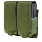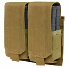 Manufacture: Condor Model: 191089 Colors: Black, Coyote Brown, Scorpion OCP, OD Green Size: 6"H x 7"W x 2.25"D The Condor Double 7.62mm magazine pouch can hold up to four magazines. Features: - Holds up to four 7.62mm or similar sized magazines - Adjustable hook and loop flap - Elastic band to hold mags together
