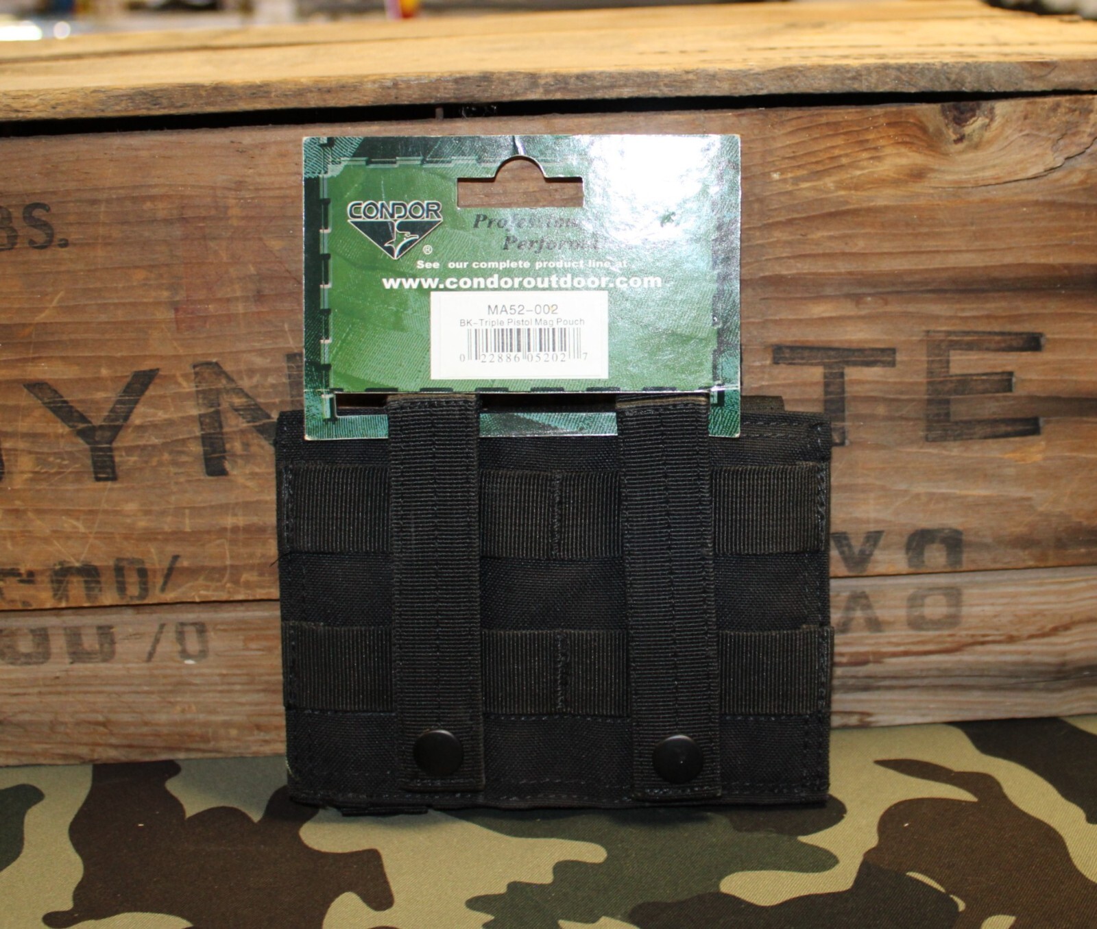 For your consideration we offer you a Condor MA52-002 Molle Tactical Triple Magazine Pouch in Black. It can be worn on your belt, bag or pack with 2 Molle straps. This item is not eligible for combined shipping.