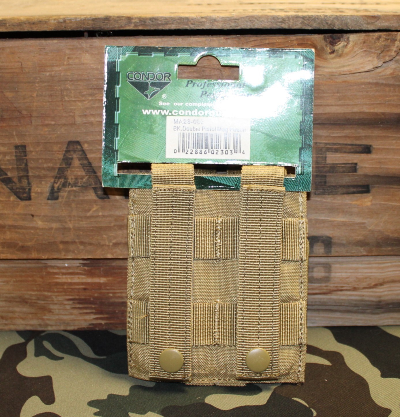 For your consideration we offer you a Condor MA23-003 Molle Tactical Double Mag Pouch in Tan. It measures 4x5x1". It can be worn on your belt, bag or pack with 2 Molle straps. This item is not eligible for combined shipping.