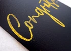 2 CARDS & 2 ENVELOPES: Each set includes 2 black "Congrats" greeting cards and 2 kraft envelopes. PREMIUM QUALITY: Each card is made out of 300 gsm thick textured paper card stock and 120 gsm kraft paper for the envelope - perfect for mailing. SIMPLE & ELEGANT: Designed simply with gold glitter on cursive fonts "Congrats" printed on the front of card, this card is great for those who want something with a hint of luxury but nothing over the top. BLANK INSIDE: Write your own messages to personalize what you want to say. CARD SIZE: Card measures 5" x 7"- standard greeting card size with plenty of space to write your personal messages. PERFECT FOR MANY OCCASIONS: Great for occasions like graduation, promotion, wedding, celebrations 2 CARDS & 2 ENVELOPES: Each set includes 2 black "Congrats" greeting cards and 2 kraft envelope PREMIUM QUALITY: Each card is made out of 300 gsm thick textured paper card stock and 120 gsm kraft paper for the envelope - perfect for mailing SIMPLE & ELEGANT: Designed simply with gold glitter on cursive fonts "Congrats" printed on the front of card, this card is great for those who want something with a hint of luxury but nothing over the top BLANK INSIDE: Write your own messages to personalize what you want to say CARD SIZE: Card measures 5" x 7"- standard greeting card size with plenty of space to write your personal messages PERFECT FOR MANY OCCASIONS: Great for occasions like graduation, promotion, wedding, celebration, anniversary