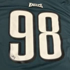 Small Wear on Front. Otherwise in Good Condition Show your support for the Philadelphia Eagles with this Connor Barwin #98 Nike On-Field jersey. Made for men in size XXL, this jersey is perfect for any football fan. The jersey features the iconic green color of the team and is made with high-quality materials to ensure durability and comfort. Represent your favorite team and player with this official NFL licensed jersey. Perfect for game day or any occasion, this jersey is sure to make a statement. Get your hands on this Nike On-Field Philadelphia Eagles Jersey today!