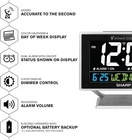 Contemporary Atomic Alarm Clock with Color Display - Dual Alarm & Battery Backup ‹ › ‹ › ‹ › ‹ › ‹ › ‹ › ‹ › ‹ › ‹ › ‹ › Contemporary Atomic Alarm Clock with Color Display Experience unparalleled accuracy with our stylish Contemporary Atomic Alarm Clock, designed for your modern lifestyle. This remarkable timepiece is not just a clock, but a statement of precision and convenience, featuring: Features: ⚡ Atomic Accuracy: Built-in receiver synchronizes automatically with the WWVB radio broadcast by the US Government’s National Institute of Standards and Technology for seconds accuracy. 📅 Calendar & Day Display: Enjoy the practicality of a color calendar and day of the week display at a quick glance, ensuring you’re always on top of your schedule. ⏰ Easy Dual Alarm: Set separate alarms for two people or configure weekday and weekend schedules effortlessly with the user-friendly Snooze/Dimmer switch. 🔋 Battery Backup: "No Worry" battery backup (requires 2 x AAA batteries, sold separately) keeps your alarm settings intact even during power outages. 💡 Always-On Display: The display remains illuminated, with adjustable brightness to suit your preference, so you can effortlessly check the time at any hour. Benefits: Perfect accuracy—always on point, no matter where you are. User-friendly design ensures effortless operation for all users. Stylish color display complements any decor, transforming your bedside into a stylish oasis. Dependable backup option gives peace of mind during power interruptions. Comprehensive timekeeping and calendar functionalities in one sophisticated device. Why Choose Our Contemporary Atomic Alarm Clock? With an effortless blend of functionality and aesthetic appeal, this Atomic Alarm Clock stands out as a perfect addition to your home. Designed with advanced technology to deliver accuracy and reliability, it caters to your daily needs while enhancing your living space with its modern design. Elevate your timekeeping experience and stay impeccably organized—order your Contemporary Atomic Alarm Clock today! Shipping Free & Fast Shipping - We offer free shipping to most of the USA with a normal delivery time of 3-7 days. However, due to the current situation, additional delivery time (up to 3 weeks) may be required for some items. Alternative Carriers - We may use alternative carriers (e.g. USPS, FedEx, UPS, etc.) to ensure your package arrives safely and on time. Due to the use of multiple carriers, we are unable to provide a tracking number automatically. Handling Time - Orders are processed and shipped within 1-2 business days of receiving cleared payment. Shipping Restrictions - Shipping to Alaska, Hawaii, Puerto Rico, Guam, and other US territories may incur shipping charges or delivery restrictions. Please contact us before ordering, or your order can be refunded/cancelled. State Restrictions - There may be restrictions based on your state of purchase. For example, certain items may not be shipped to California due to state regulations. Contact for Tracking Updates - If you require tracking updates or have any concerns about the delivery of your order, please feel free to contact us, and we will be happy to assist you. Return 30-Day Hassle-Free Returns - We want you to be completely satisfied with your purchase. If you are not, you can return the item within 30 days of receiving it for a full refund or exchange. Easy Return Process - To start a return, simply contact us and we will provide you with a prepaid return shipping label and detailed instructions. Restocking Fee - There are no restocking fees for returns. However, the buyer is responsible for return shipping costs if the return is not due to a seller's error. Refund Processing Time - Refunds will be processed within 5 business days of receiving the returned item in its condition. Payment We accept all major credit cards, PayPal, and Apple Pay for your convenience. Your payment information is secure and encrypted to ensure a safe and seamless transaction. Please complete your payment within 3 days of purchase to avoid any delays in shipping. Feedback Your feedback is extremely important to us. We strive to provide the best products and customer service possible. If you are satisfied with your purchase, please take a moment to leave us a positive review. If you have any concerns or issues with your order, please contact us before leaving negative feedback. We are committed to resolving any problems and ensuring your satisfaction. Contact Us If you have any questions or concerns, please feel free to out to our customer support team. You can contact us through the eBay messaging system. We are available Monday to Friday, 9:00 am to 5:00 pm EST, and we will do our best to respond to your inquiry within 24 hours. Buy it now and enjoy a pleasant shopping experience! Features: Alarm Theme: Atomic Clock Type: Details In Description Display Type: Digital Color: Silver Power Source: Corded Electric Style: Contemporary Frame Material: Plastic Shape: Rectangular Item Height: 5.1 Inches Item Weight: 16 Ounces
