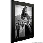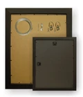 Contemporary style; black; smooth wrap finish Frame includes: glass, rigid black backing and pre-attached stamped hanging hardware Frame holds a 8 inch by 10 inch photo/print (viewable area reduced by .25" on each side due to frame lip) Frame moulding is 1 inch wide; MDF wood composite Frame is designed for WALL HANGING only (hanging hardware allows for portrait or landscape orientation)