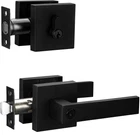 Entrance Lever door handle [Lock with Two keys] and Single Cylinder Deadbolt set for office or front door with an Iron Black Finish, Reversible for Right & Left side, Product Description: This Premium Quality Deadbolt & Entrance Lever door handle set features a special Square-styled, with an amazing Iron Black finish. This hardware piece is fully fitted with an adjustable latch of 60/70mm. and a radius square corner strike. Package Includes: * Entrance Lever door handle (reversible for right and left hand doors) Single Cylinder Deadbolt (reversible for right and left hand doors) * Radius square corner strike (with latch box) * Diagram template for installation * Four keys for the lock (all keyed alike) From the manufacturer: Our Premium Quality Square-Styled Entrance door knobs and deadbolt set is an ideal decorative accessory, professionally designed to perfectly compliment a wide range of contemporary and modern, residential interior and exterior doors. This deluxe hardware is creatively fitted with a, reversible, lever handle designed to perform very efficiently, whether it receives a left-handed or right-handed application. This original lockset comes with four keys. It also features a special square-corner striker and an incredibly adjustable latch style which is 60/70mm. and is designed to fit doors between 1-3/8 inch and 1-3/4 inch. It has an Iron Black finish and is protected by a clear powder coat finish. Designed to complement modern contemporary style interior and exterior doors for commercial and residential applications front entry door handleset lever and deadbolt set Heavy duty high grade security door dead bolt and lever knob reversible that makes it perfect for fitting left or right handed doors Uniquely crafted low profile square shaped door lever and dead-bolt Entrance Set With 2 3/8 inch- 2 3/4 inch adjustable backset latches and square corner strikers Comes with unique thumb-turn interior lock knob that that is opened by an exterior key KW1 keyway for office or front doors, iron black color Durable & Portable secure handle & deadbolt which Fits 1-3/8-Inch-1-3/4-Inch doors iron black finish.