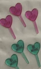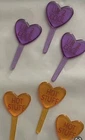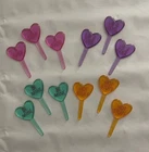 These Conversation Heart Cupcake Picks come in a pack of 12 plastic picks shaped like hearts in pink, purple, teal, and orange colors. Ideal for Valentine's Day or cupcake-themed occasions, they can also be used for crafting projects. Add a sweet touch to your cupcakes or crafts with these adorable picks! Very good condition.