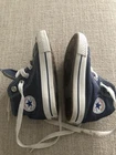 These Converse All Star Blue and White Sneakers in size 5 for toddlers are perfect for both boys and girls. Featuring a round toe, lace-up closure, and flat heel, they offer comfort and style for activewear or casual occasions. Made of canvas with a rubber outsole, these sneakers also have the iconic Converse logo accents and come in a classic navy and white color scheme. The high-top shoe shaft style and solid pattern make them a versatile choice for all seasons. Ideal for walking and everyday wear, these Converse Chuck Taylor All Star sneakers are a timeless addition to any child's wardrobe.