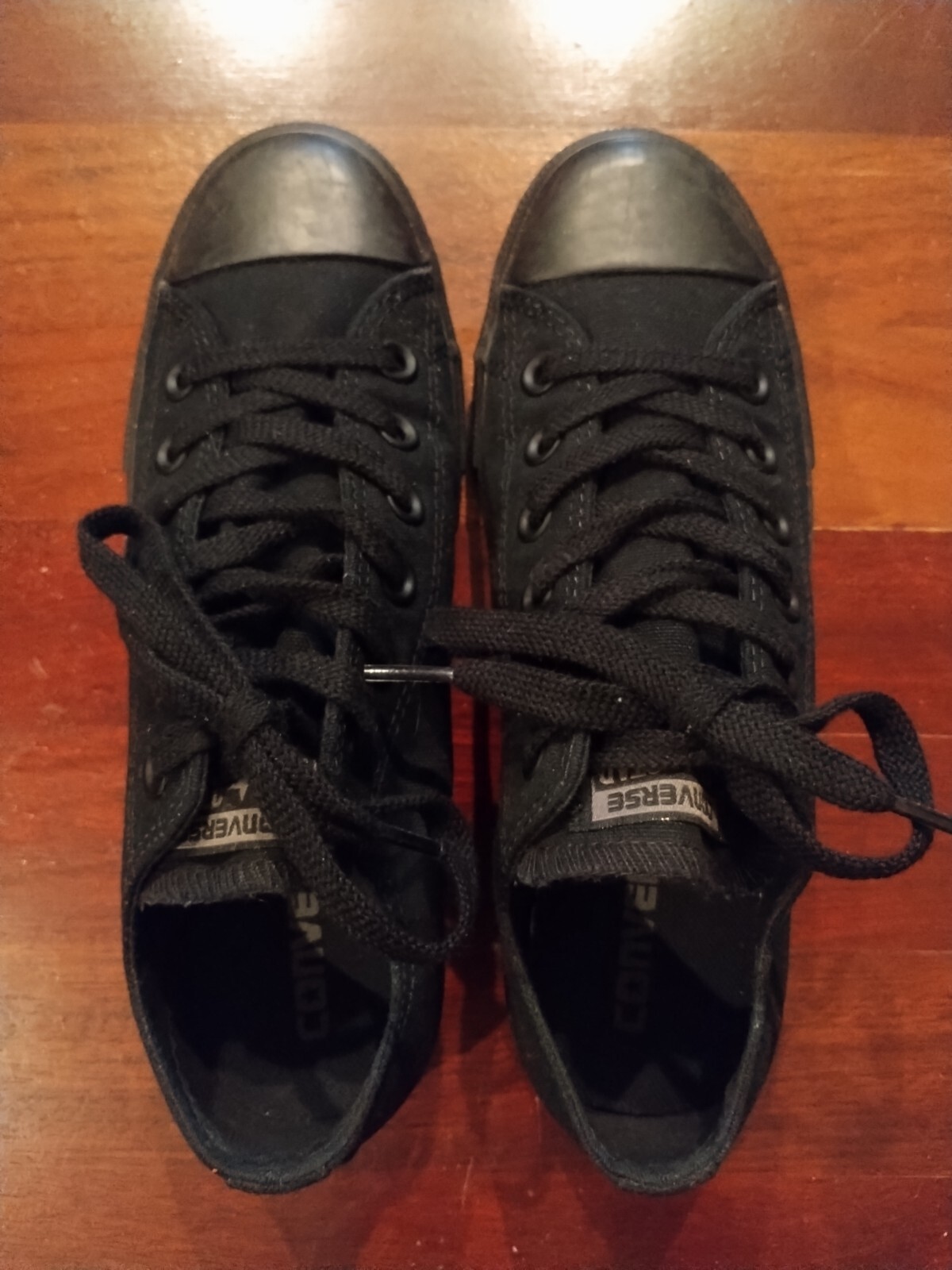 You are looking at a Pair of CONVERSE All Star Unisex Low-Top BLACK Canvas Sneakers Tennis Shoes. SIZE:Women 6.5M or Men 5M. Uppers are Canvas and Bottoms are Rubber. In Like New Condition. See Photos for more Details and Description. Authentic.