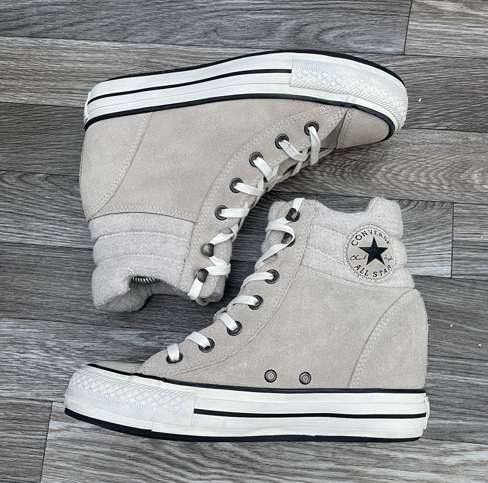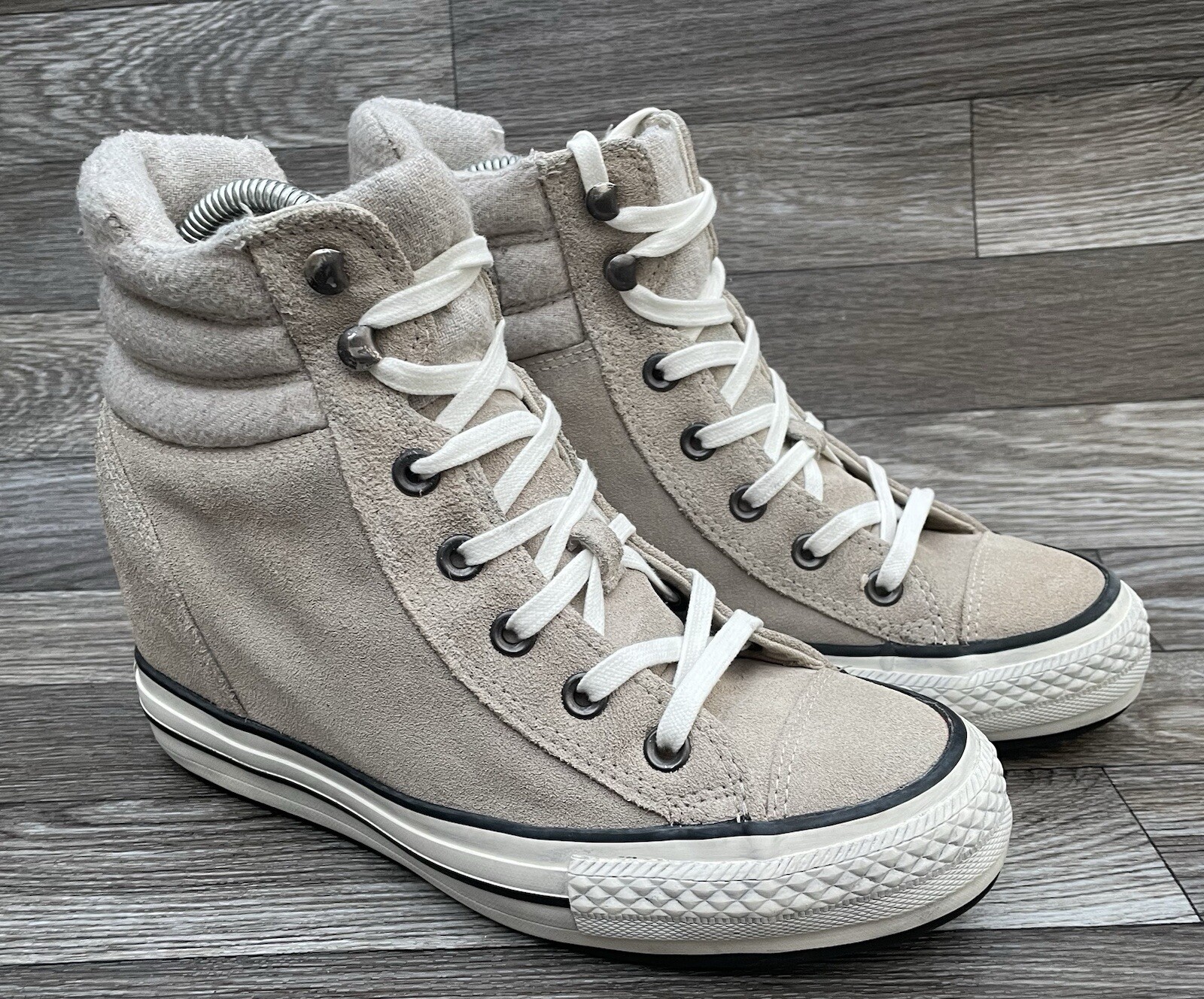 Converse CTAS All Star Womens 9M Platform Plus Hi Hidden Wedge Beige Suede