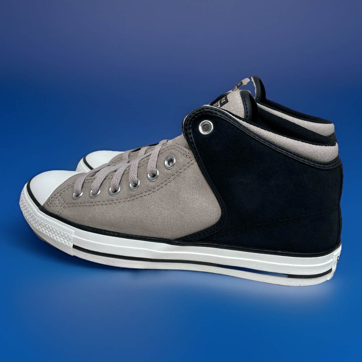 - new in box - men’s size 10 - women’s size 12 The Converse CTAS High Street Mid Top Sneakers in Papyrus/Black are a versatile and stylish shoe option for both men and women. With a lace-up closure and medium shoe width, these athletic sneakers are perfect for a variety of activities such as gym training, walking, and casual wear. Made with canvas and suede upper material, these Converse shoes offer comfort and durability. The solid black and papyrus color combination adds a touch of urban flair to any outfit, making them a fashionable choice for both seasons. Made in Vietnam, these Converse sneakers are a quality and trendy addition to anyone's shoe collection.