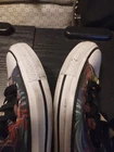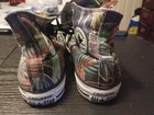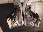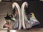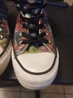 Elevate your sneaker game with these Converse CTAS High Tops in a vibrant tropical fuchsia glow pattern. These lace-up sneakers feature a high top shoe shaft style and a standard shoe width, making them perfect for walking and other activities. The synthetic upper material and canvas lining provide breathability and comfort, while the rubber outsole ensures durability. These sneakers are unisex and come in a men's size 4 or women's size 6. The sneaker style code is 155393C and the shoe is designed for athletic use, making it a great choice for activewear, casual wear, or workwear. The shoes have not been signed or customized and are in excellent condition.
