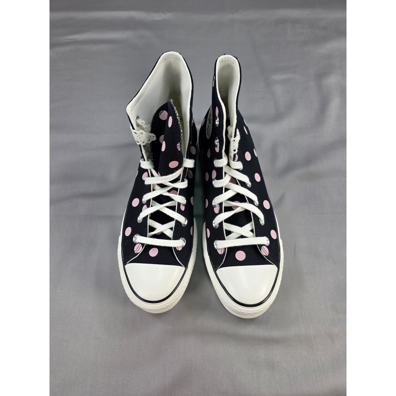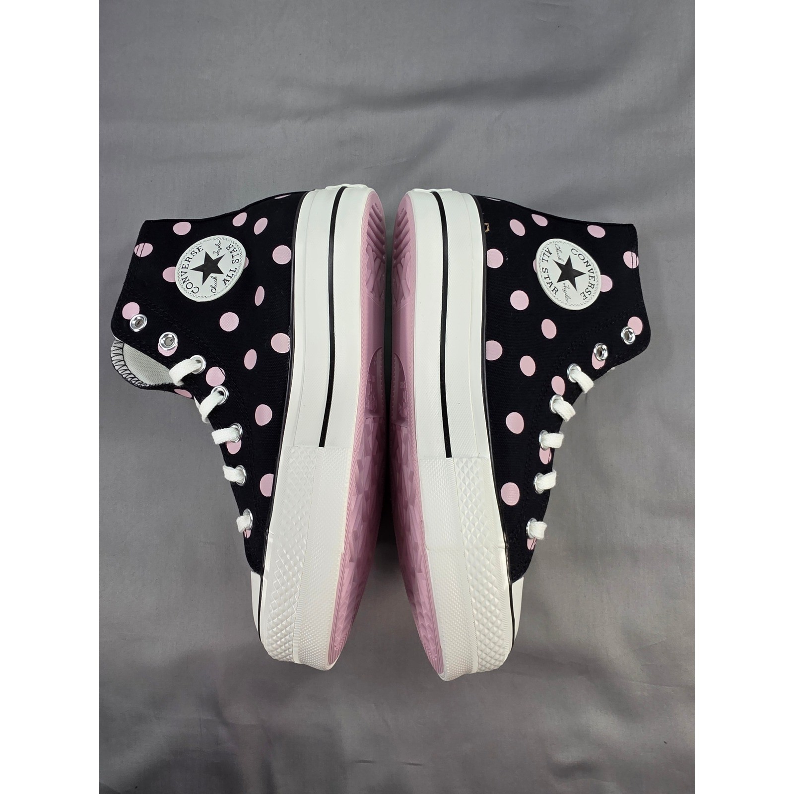 Step into style with these eye-catching Converse CTAS Lift Hi sneakers! A playful polka dot pattern dances across the classic black canvas, punctuated by sweet pink accents. The iconic Converse star logo adds a touch of heritage, while the platform sole gives you a stylish lift. These sneakers are perfect for adding a fun, fashionable edge to your everyday look. Rock them at a casual brunch with friends, a weekend concert, or even a fun date night. Department: Women Color: Black UK Shoe Size: 6.5 Model: Converse CTAS Lift Hi Upper Material: Canvas Features: Platform, Padded, Comfort, Cushioned Style: Sneaker Character: Polka Dot EU Shoe Size: 39.5 Type: Athletic Release Year: 2023 Keywords: Converse, CTAS Lift Hi, Platform Sneakers, Polka Dot, Black, Pink, Women's Shoes, High Top Sneakers, Casual Shoes, Fashion Sneakers, Chuck Taylor, All Star, A10688C