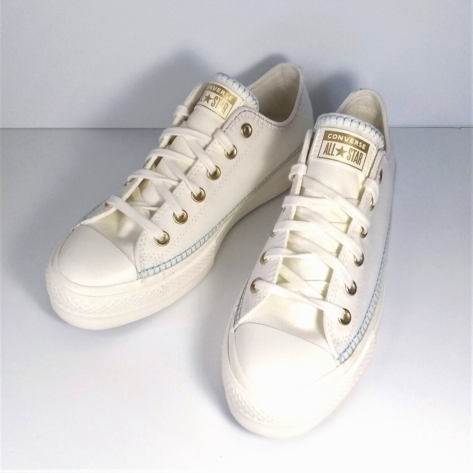 Converse CTAS Lift Ox Shoes Sneakers Womens 9 Egret White True Sky Blue Gold A08732C NEW Without Box FRESH PICK If you've been looking for a sign to stop and smell the flowers, this is it. Platform Chucks get a summer-ready refresh, with pops of colourful stitching and blooming floral hits. Just add sun. Classic canvas for that timeless Chucks look and feel OrthoLite cushioning helps provide optimal comfort Decorative pink and blue stitching for a crafted look Faux leather, studded daisy applique at heel Classic, metallic All Star tongue label MSRP $ 80.00 ** Note Color Shade may differ slightly from photos depending on lighting. We have attempted to remain as close as possible. * ALL items will ship USPS Ground Advantage * *** Thanks for looking ! LOCB25RR 2L5