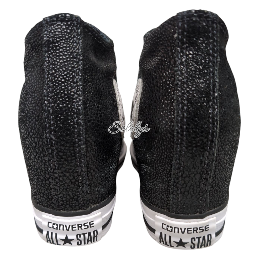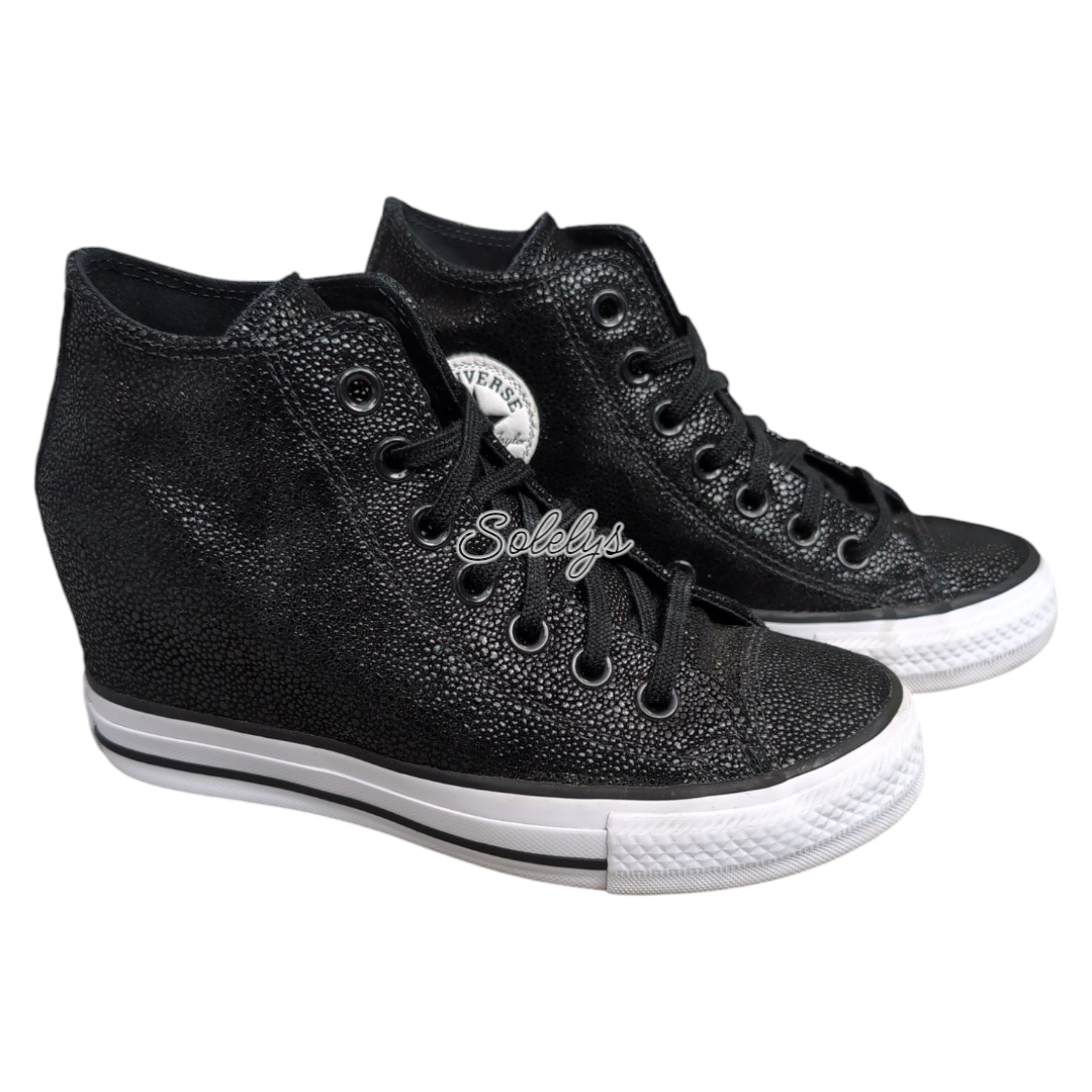 When your sneakers come with a secret heel and a stingray finish? That’s more than footwear—it’s a flex. This 2017 Converse Lux Mid brings the drama with a 2.5” hidden wedge and a glossy, black stingray-textured leather upper that turns classic into quietly cutthroat. Size: US Womens 6 | UK 4 | EUR 37 | CM 23 Style: CTAS Lux Mid Stingray | 555154C Color: Black | White Excellent pre-owned condition. Clean and ready to wear. Please review all photos of the exact pair you will receive. • Rare 2017 drop with built-in 2.5" wedge—stealth height for stealth moves • 7-eyelet mid-top for a sculpted ankle and elevated silhouette • Genuine pebbled leather with a stingray-textured gloss—because basic isn’t in your vocabulary • Bold black and white contrast with crisp rubber detailing • Classic Converse sole, reimagined for those who never blend in For when you want your kicks to whisper luxury but still stomp. hidden wedge sneaker, stingray leather Converse, Y2K revival footwear, luxe platform sneaker, cybercore streetwear, contendercore style, alt girl sneaker, archival Converse 2017, pebbled leather high-top, elevated basics, sneaker with lift, niche fashion kicks, street luxe sneaker, quiet statement shoe, subculture sneaker drop